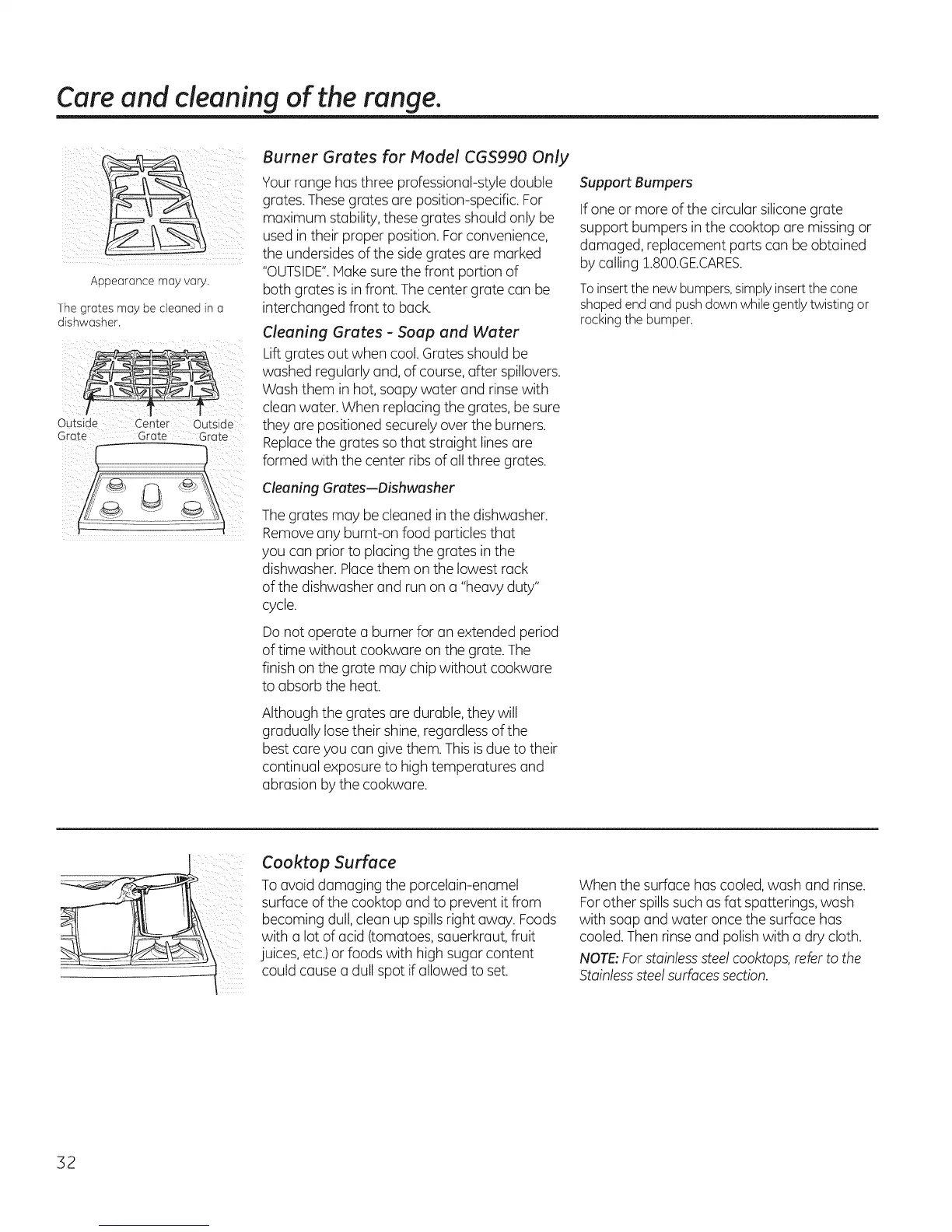 Care and cleaning of the range,