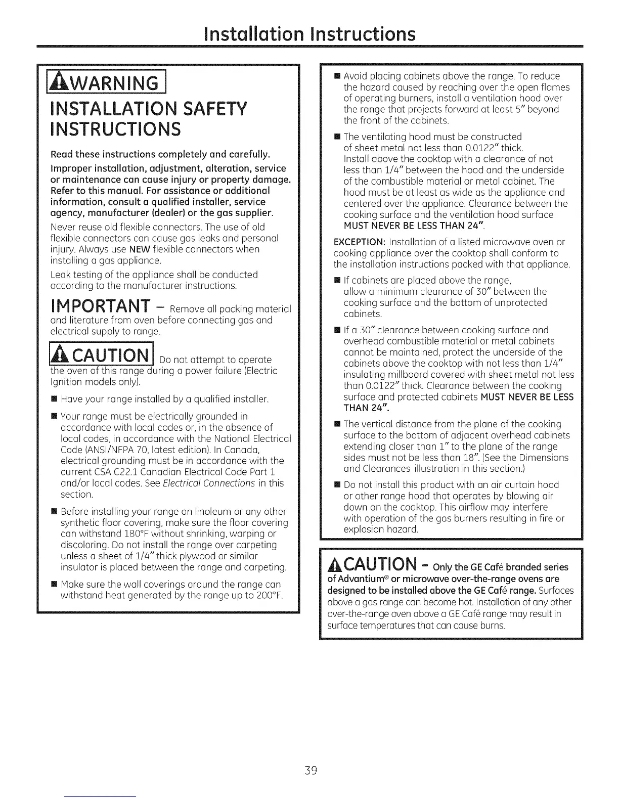 over-the-range oven above a GECaf6 range may result in