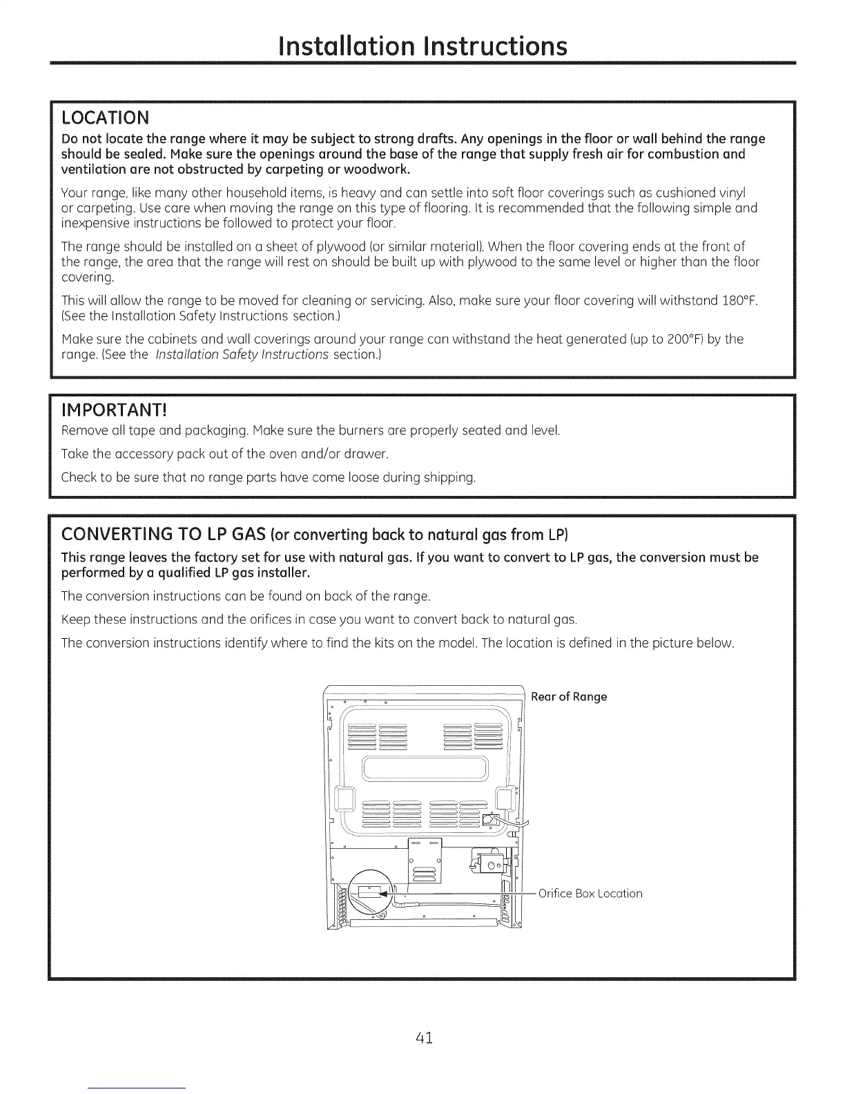 Hake sure the cabinets and wall coverings around your range can withstand the heat generated (up to 200°F) by the