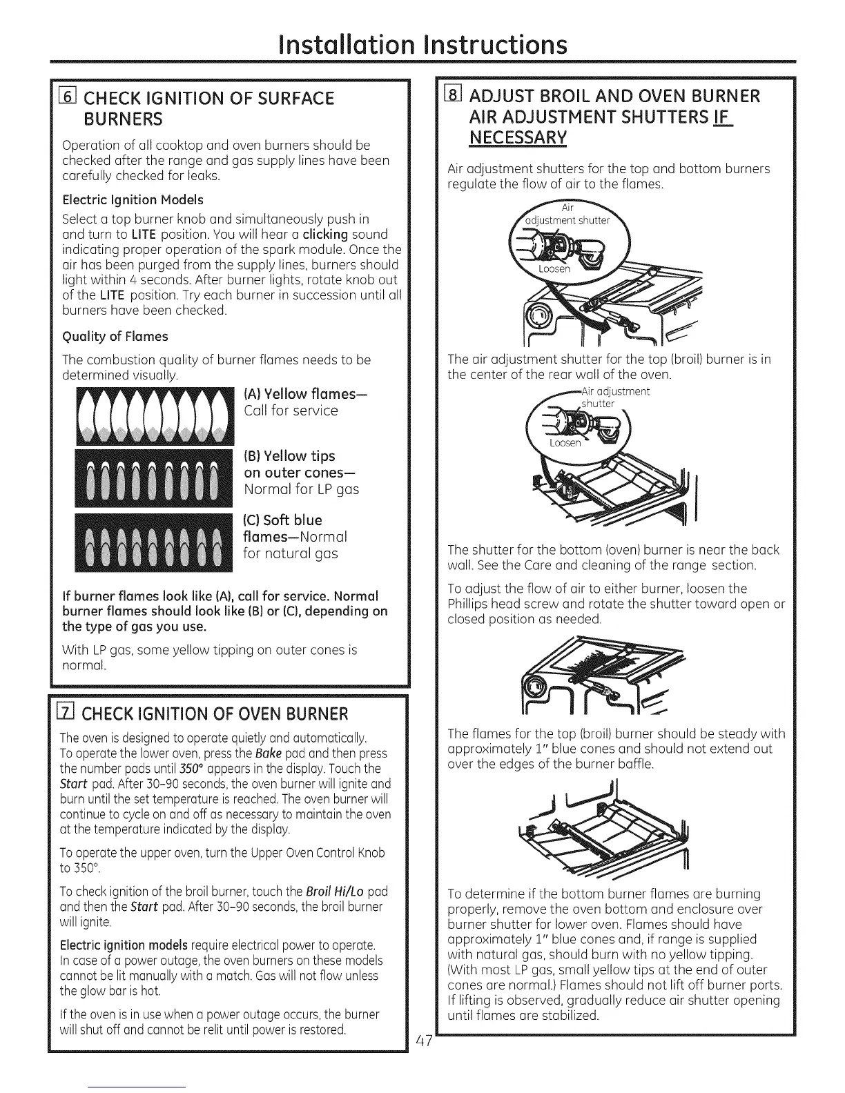 cones are normal.) Flames should not lift off burner ports.