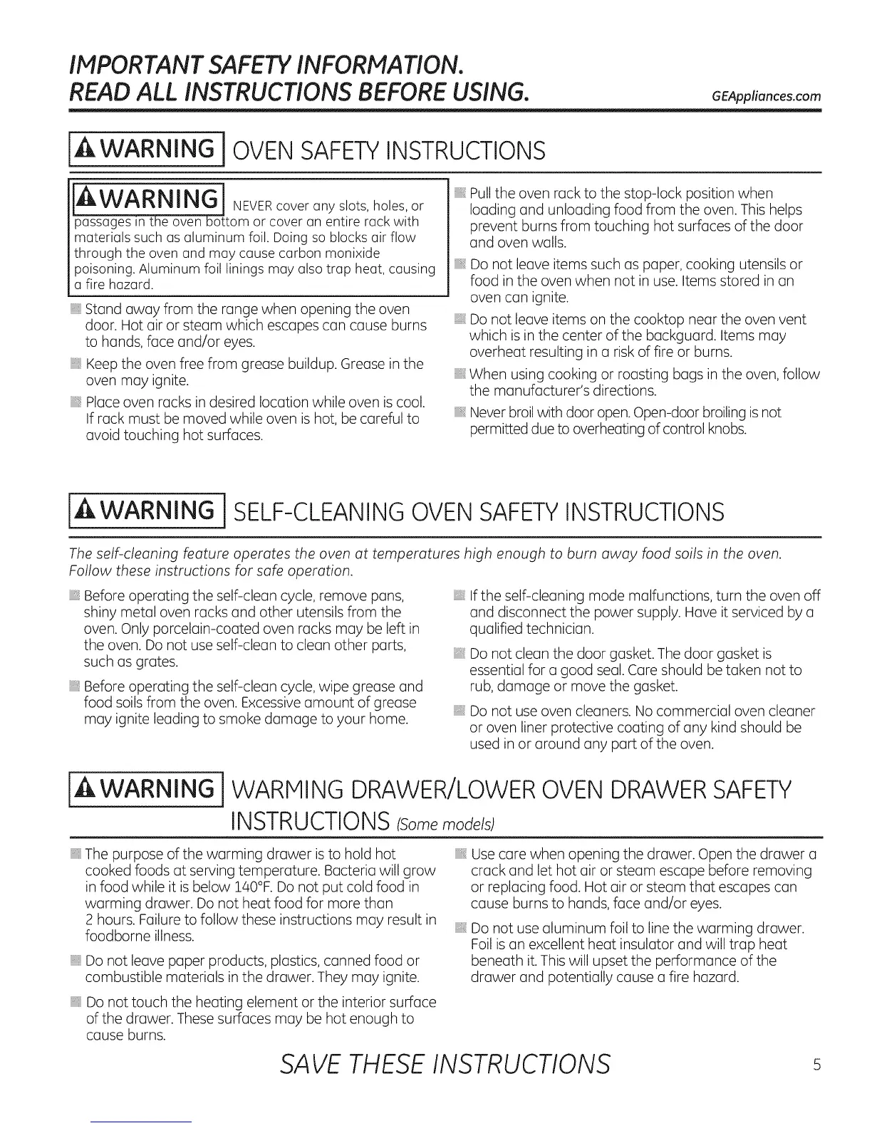 iA WARNING iSELF-CLEANING OVEN SAFETY INSTRUCTIONS