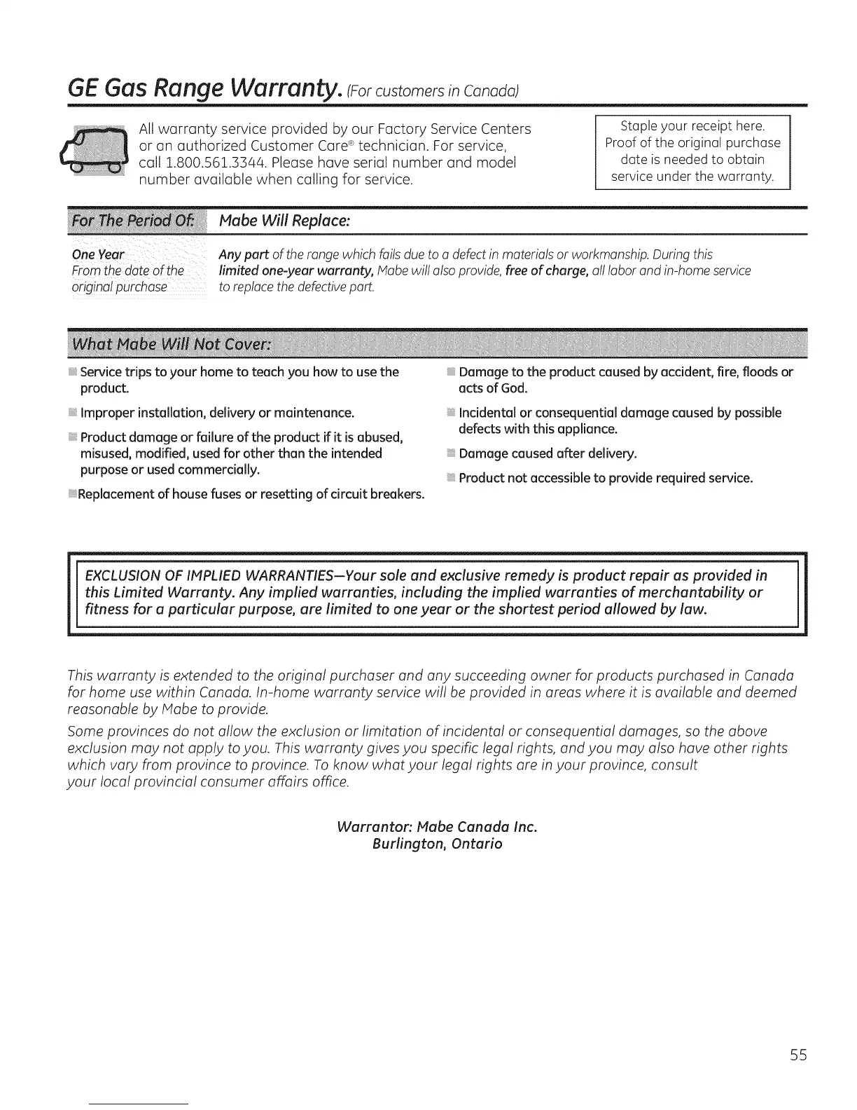 GEGas Range Warranty. cForcustomersConodol
