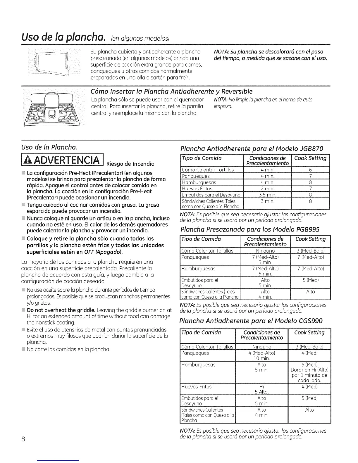 la plancha. La cocd6n en la configurad6n Pre-Heat