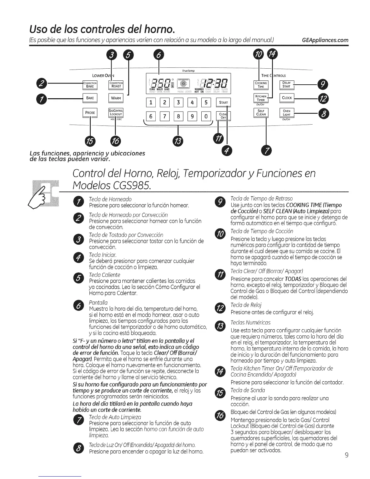 (Esposible que las funciones y apariencias varien con relaci6n a su modelo a Io largo del manual.) GEAppliances.com
