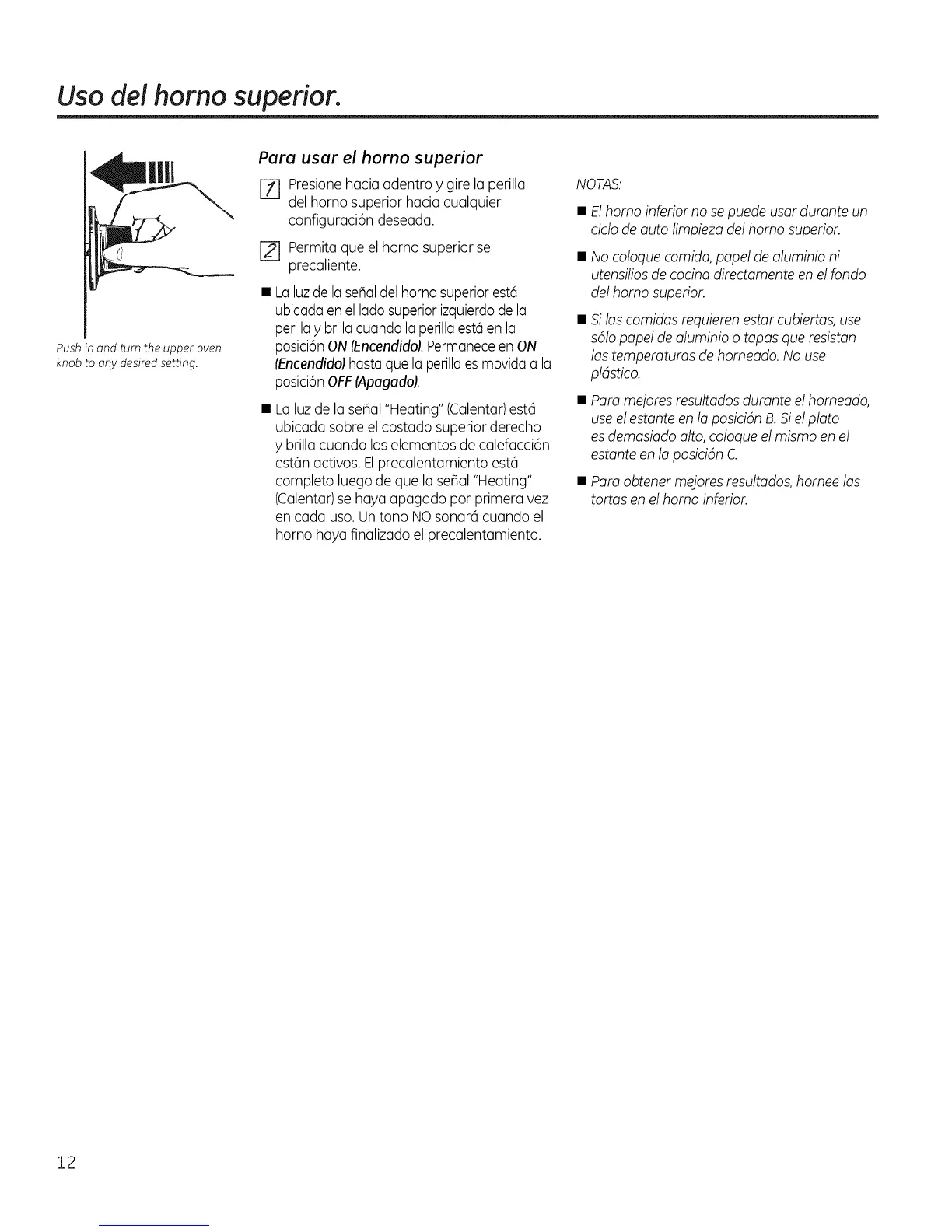 Para usar el horno superior