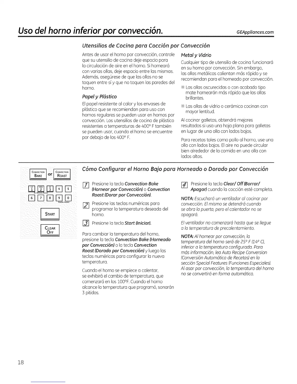Usa del homo inferior par convecci6n. GEAppliances.com
