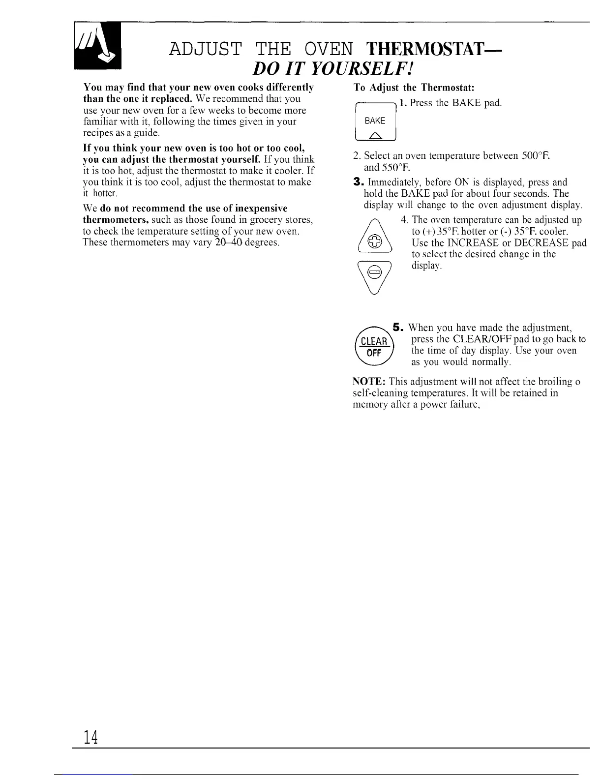 ADJUST THE OVEN THERMOSTAT--
