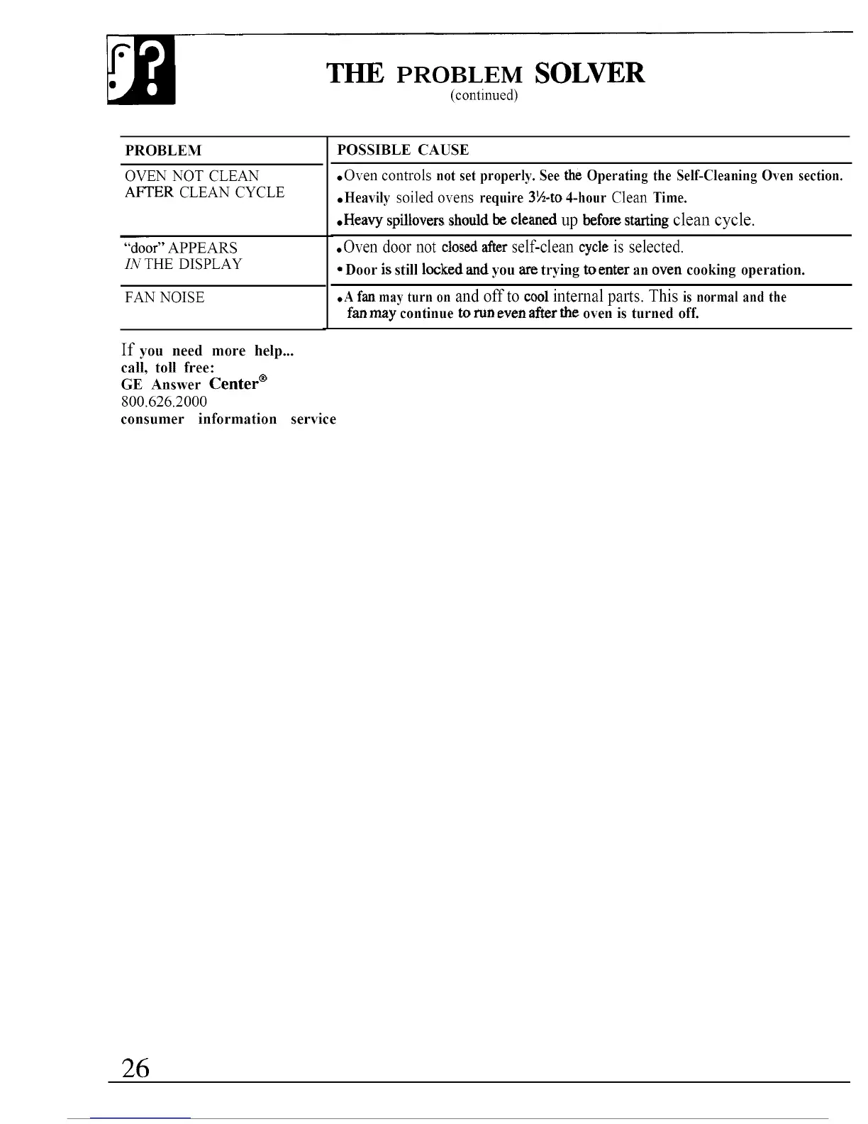 "door" APPEARS °Oven door not closed after self-clean cycle is selected.
