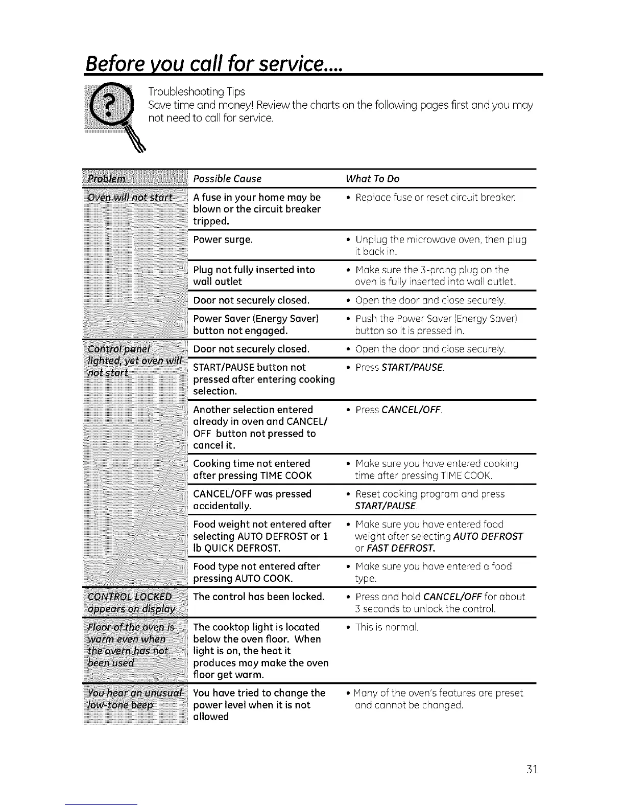 You have tried to change the • Many of the oven's features are preset