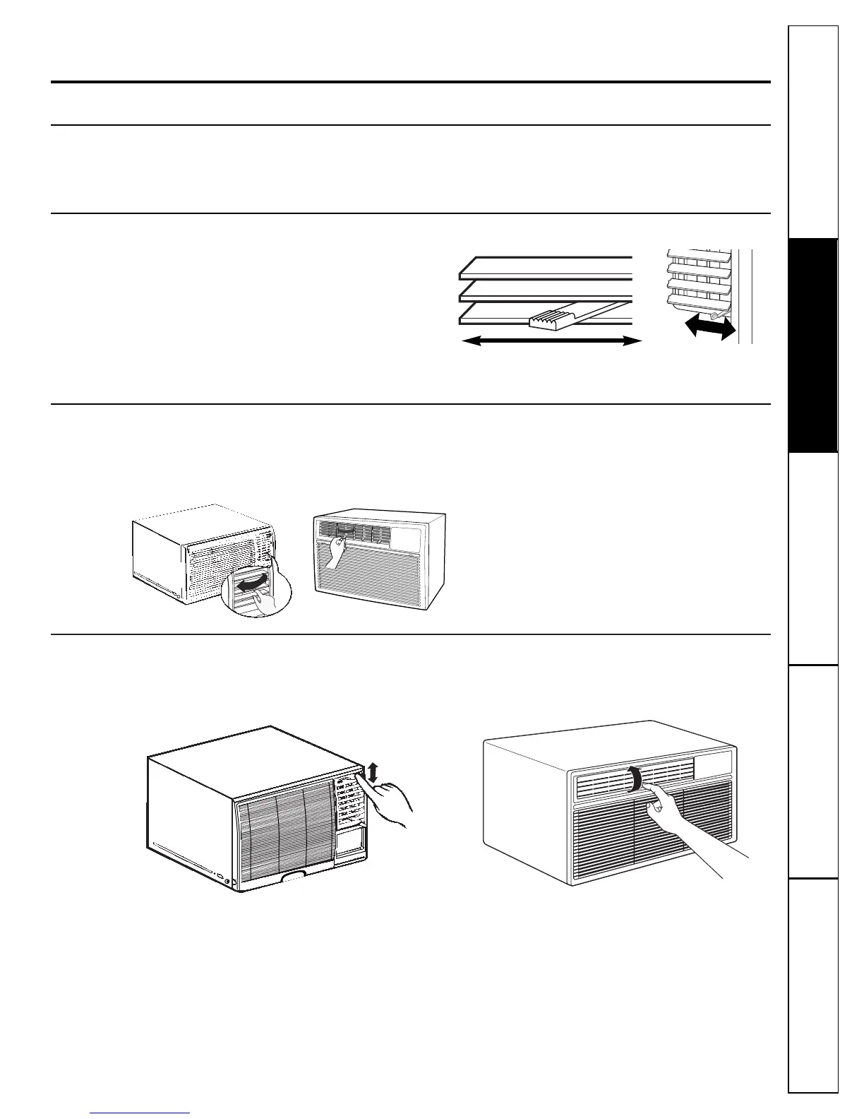 adjusted by the louver levers or by grasping and