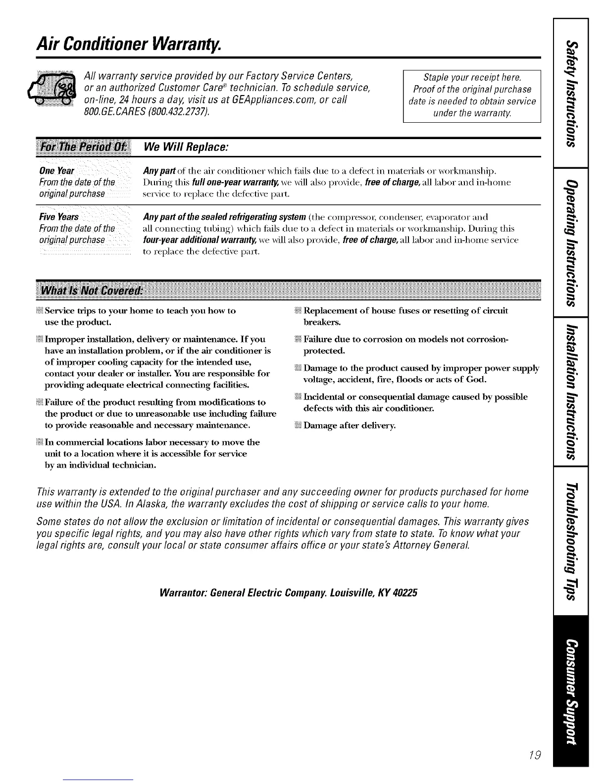 Warrantor: General Electric Company. Louisville, KY 40225