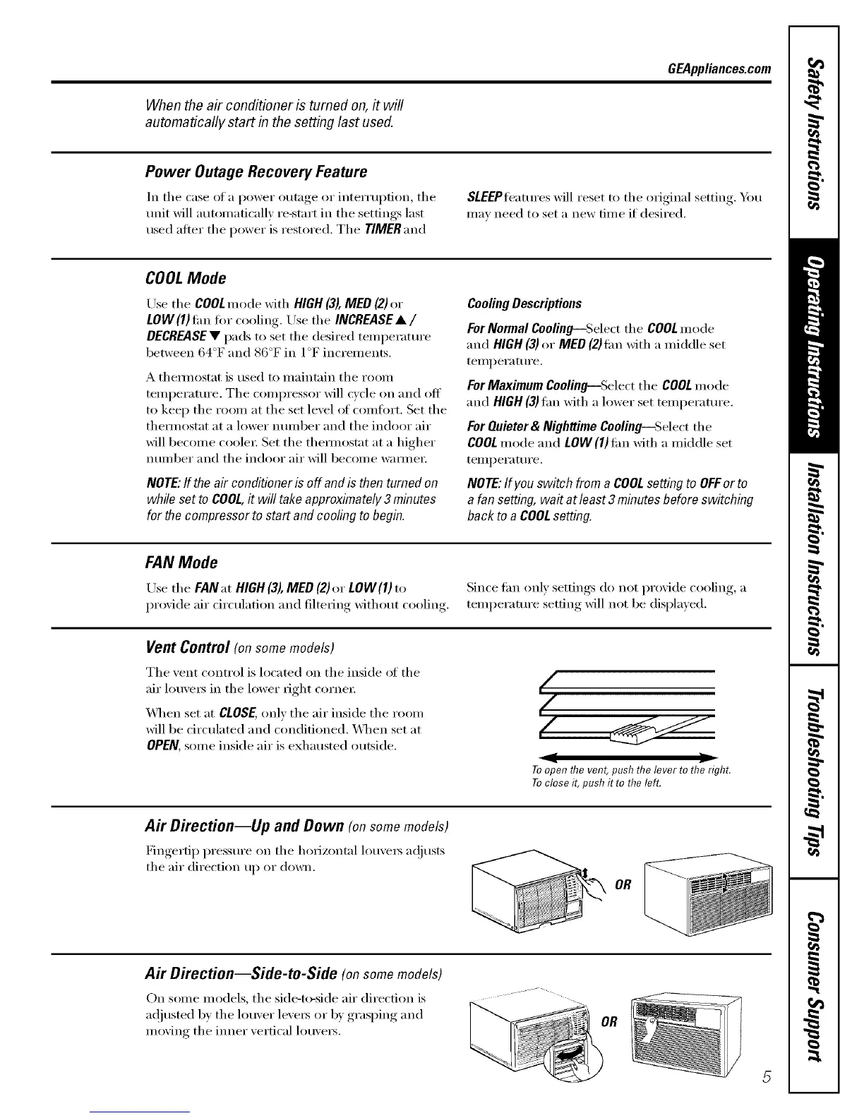 Air Direction--Up and Down (on some models)