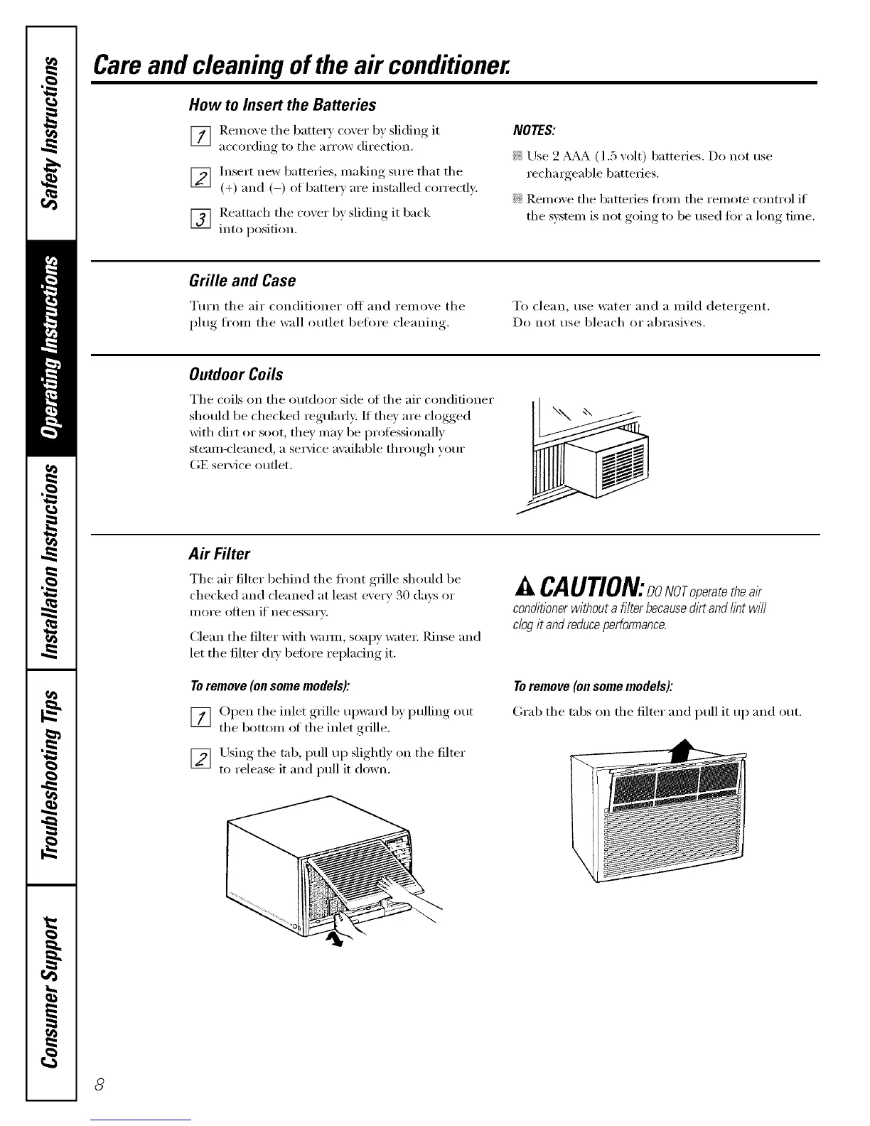 Careand cleaning of the air conditioner.