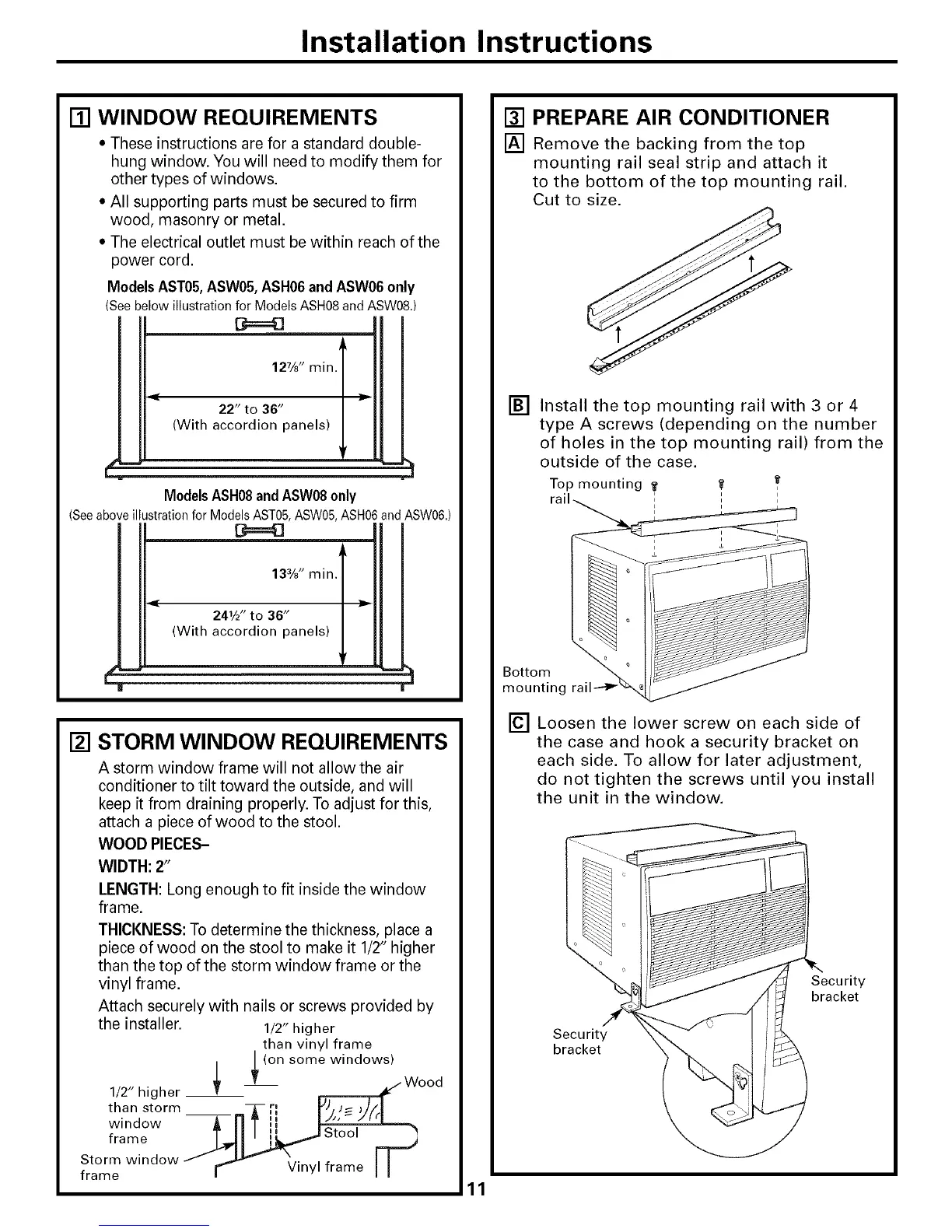 ModelsAST05, ASW05,ASH06 andASW06 only