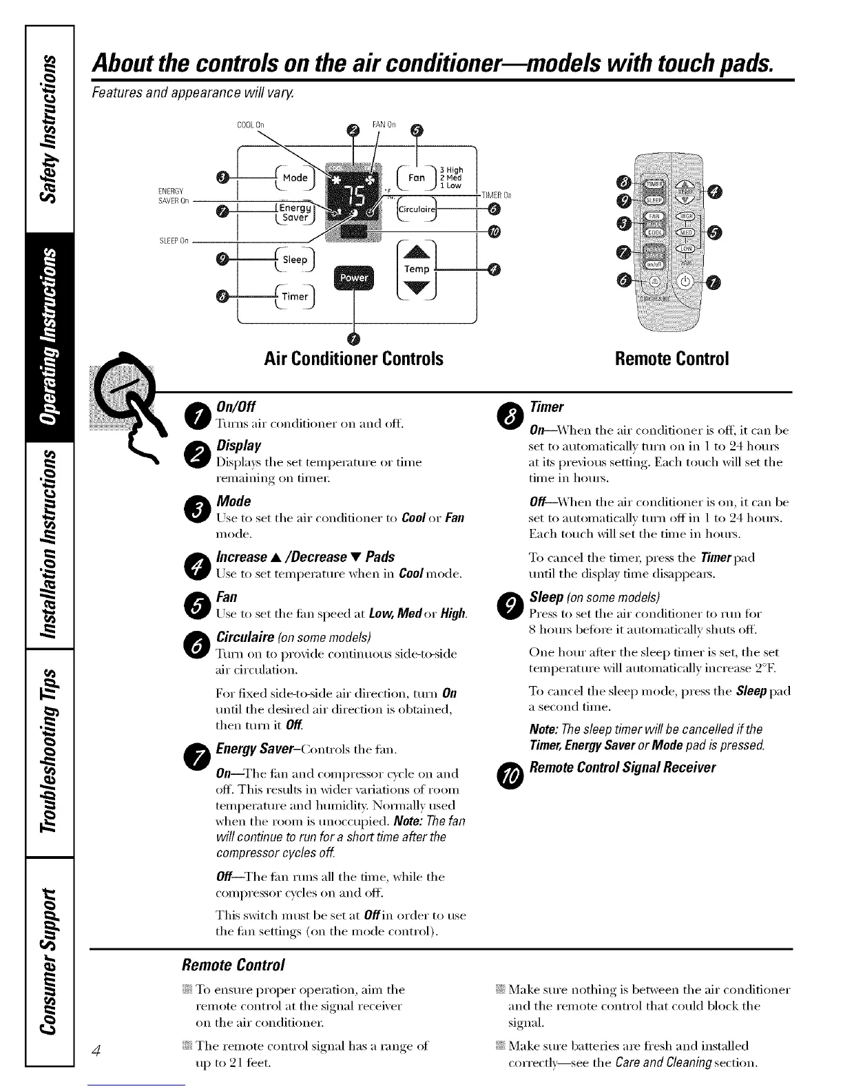 Aboutthe controlsonthe air conditionermmodels with touchpads.