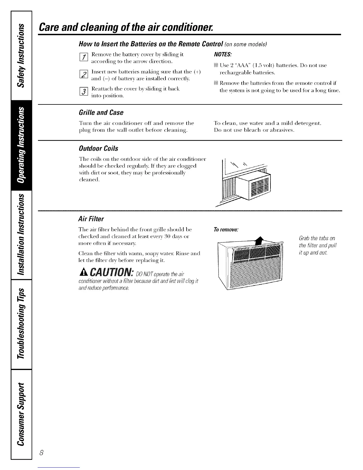 Careand cleaning of the air conditioner.