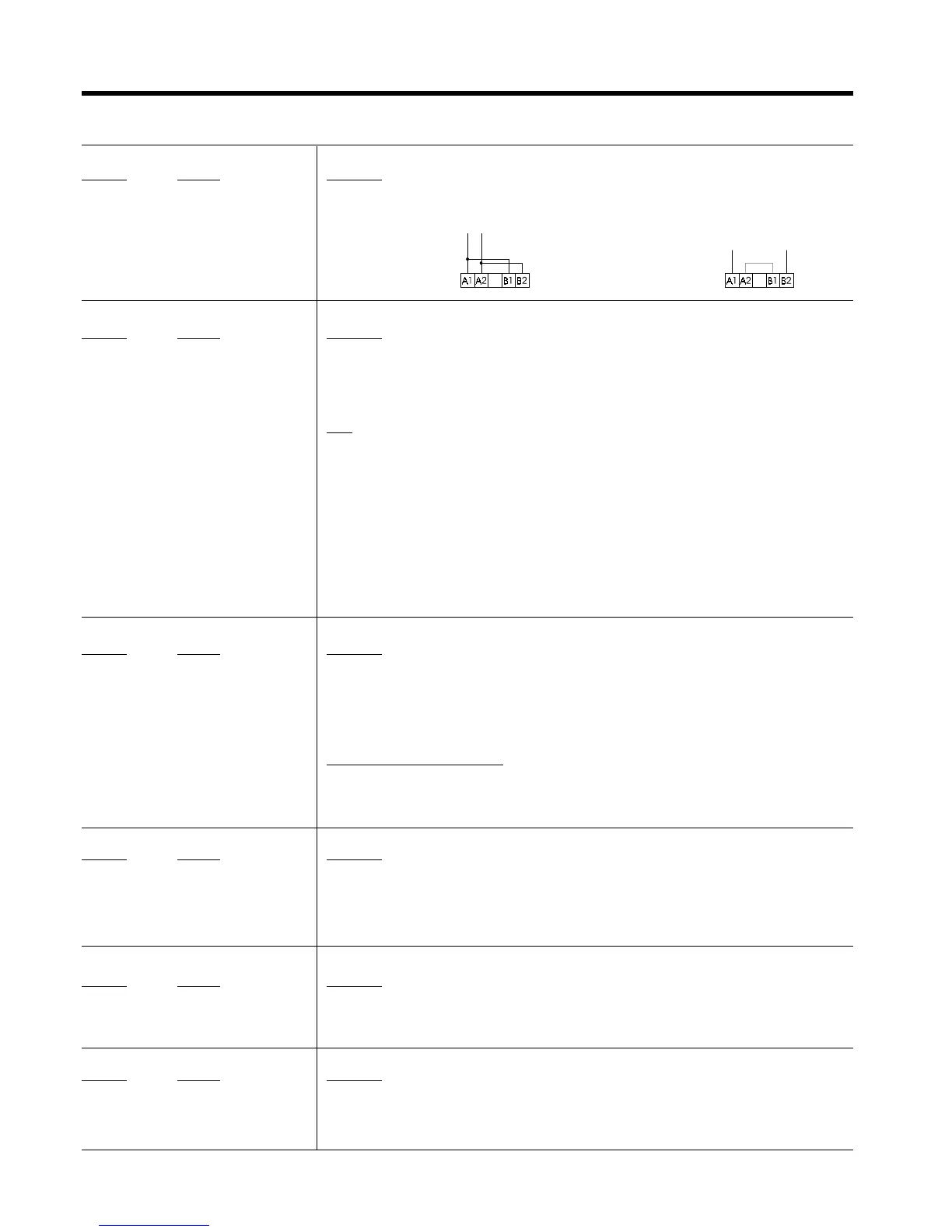 11, 12, 14 Programmable relay1r 11-12 = NC, 11-14 = N.O. dry contacts. This relay can be assigned to several internal output functions. (p. 3.6)