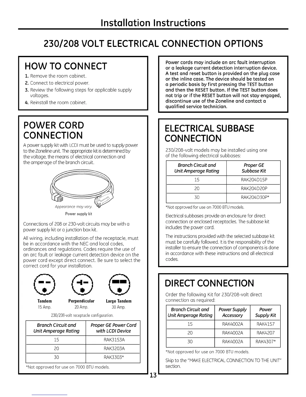 230/208 VOLT ELECTRICAL CONNECTION OPTIONS