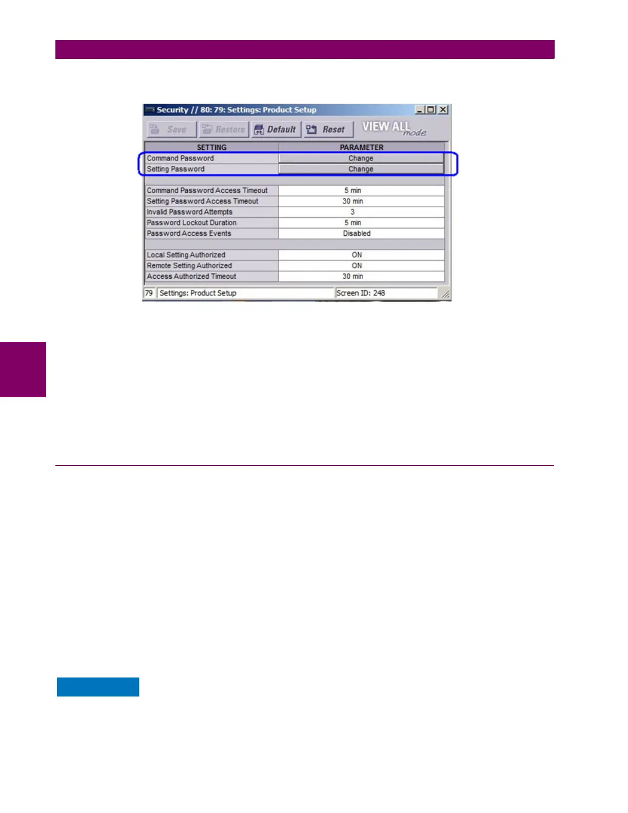 The following settings are available through the remote (EnerVista UR Setup) interface only. Select the Settings > Product