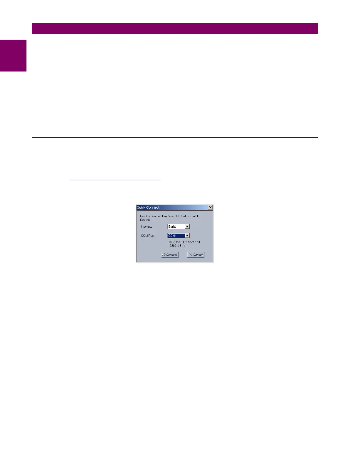 Each time that the EnerVista UR Setup software is initialized, click the Quick Connect button to establish direct communi-