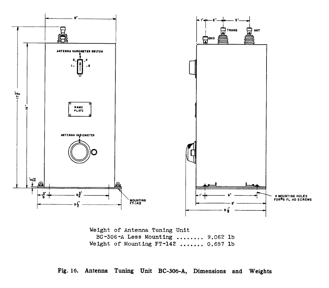 Fig. 16. Antenna Tuning Unit BC-306-A, Dimensions and Weights