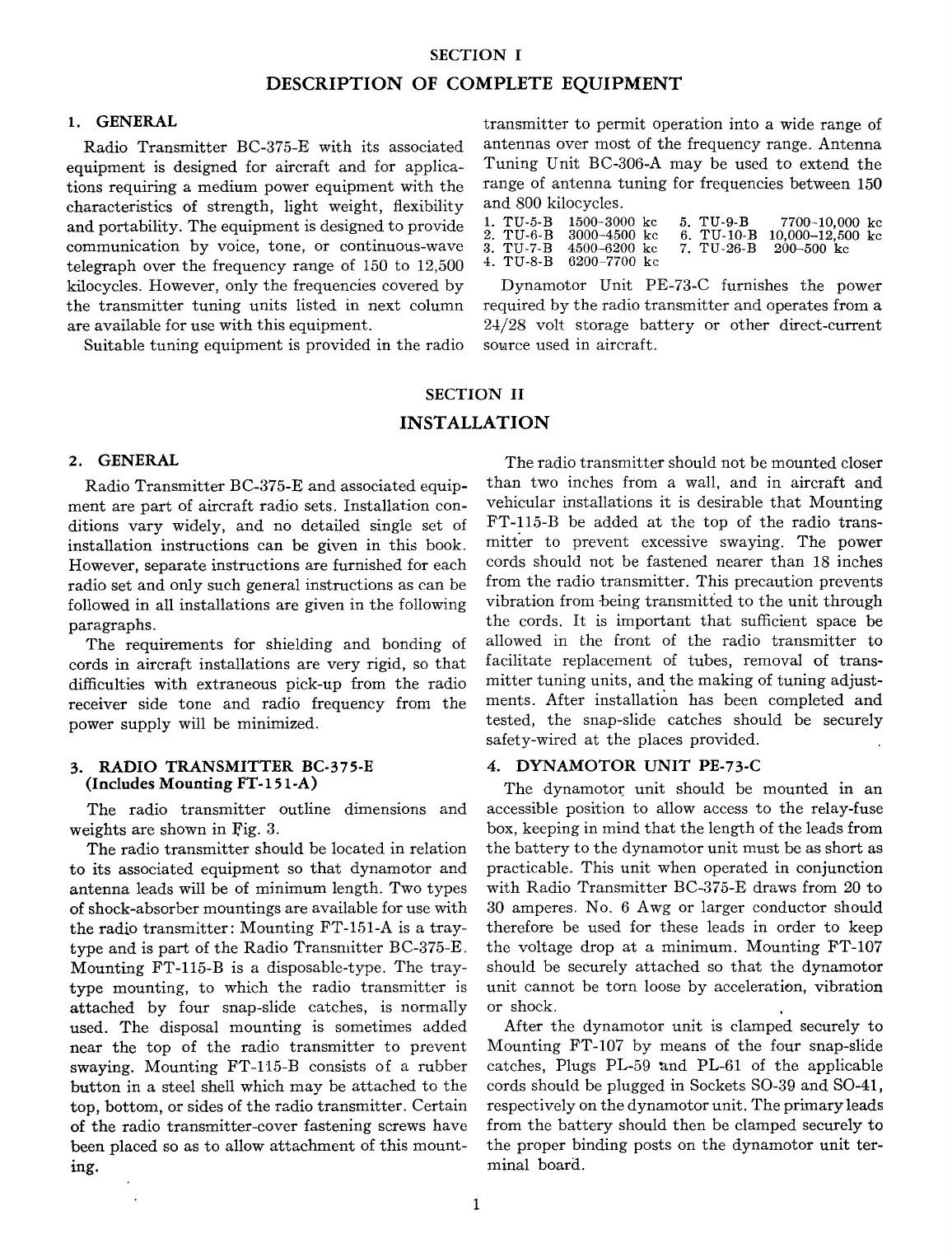 ment are part of aircraft radio sets. Installation con-