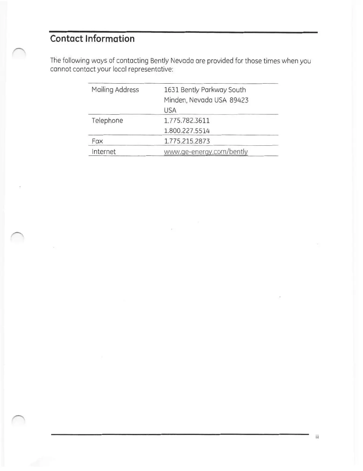 GE Bently Nevada 330400 - Default Chapter; Contact Information