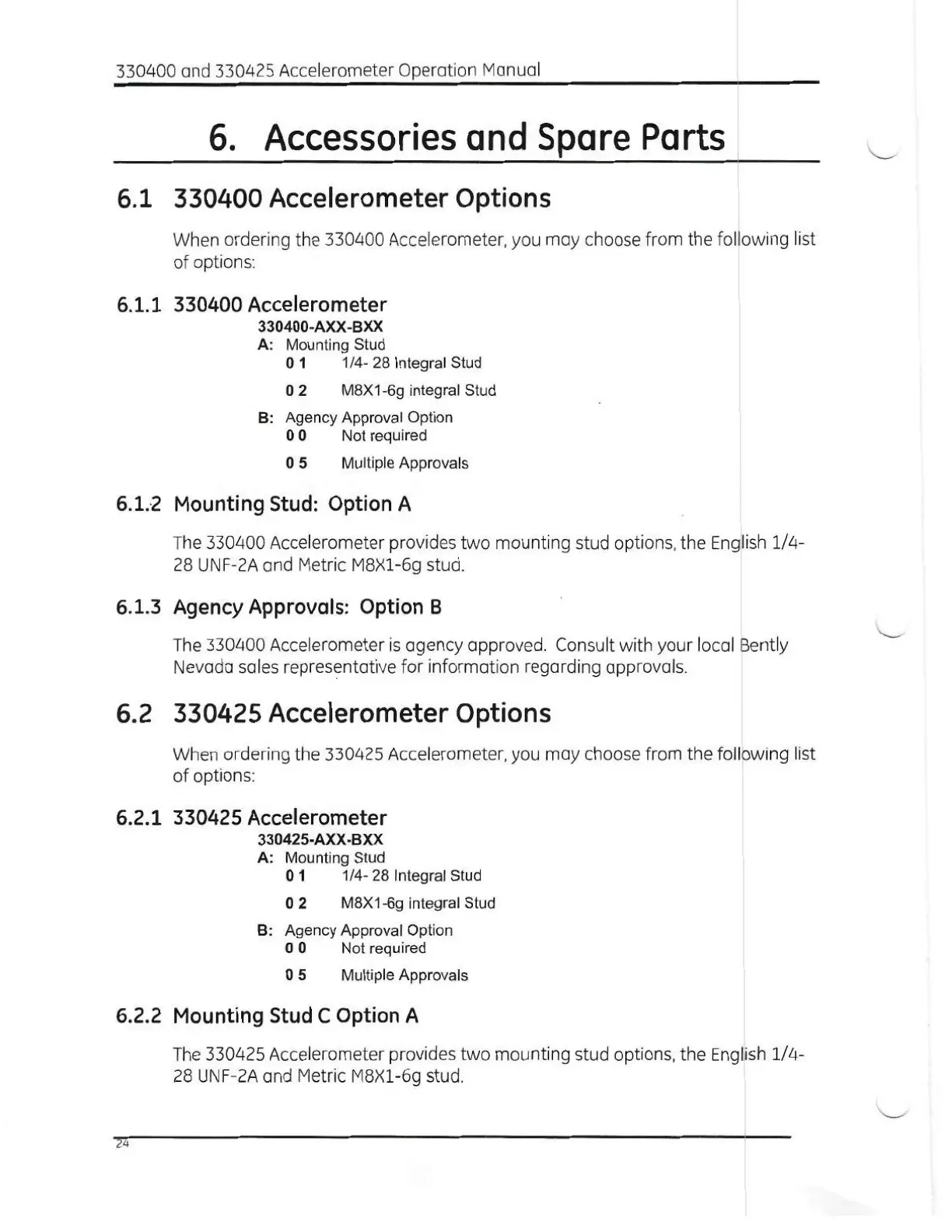 When ordering the 330425 Accelerometer, you may choose from the following list