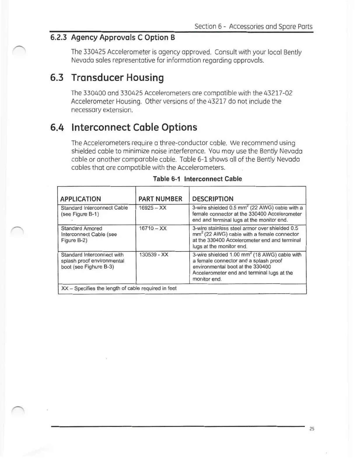 GE Bently Nevada 330400 - Interconnect Cable; Interconnect Cable Options; Transducer Housing