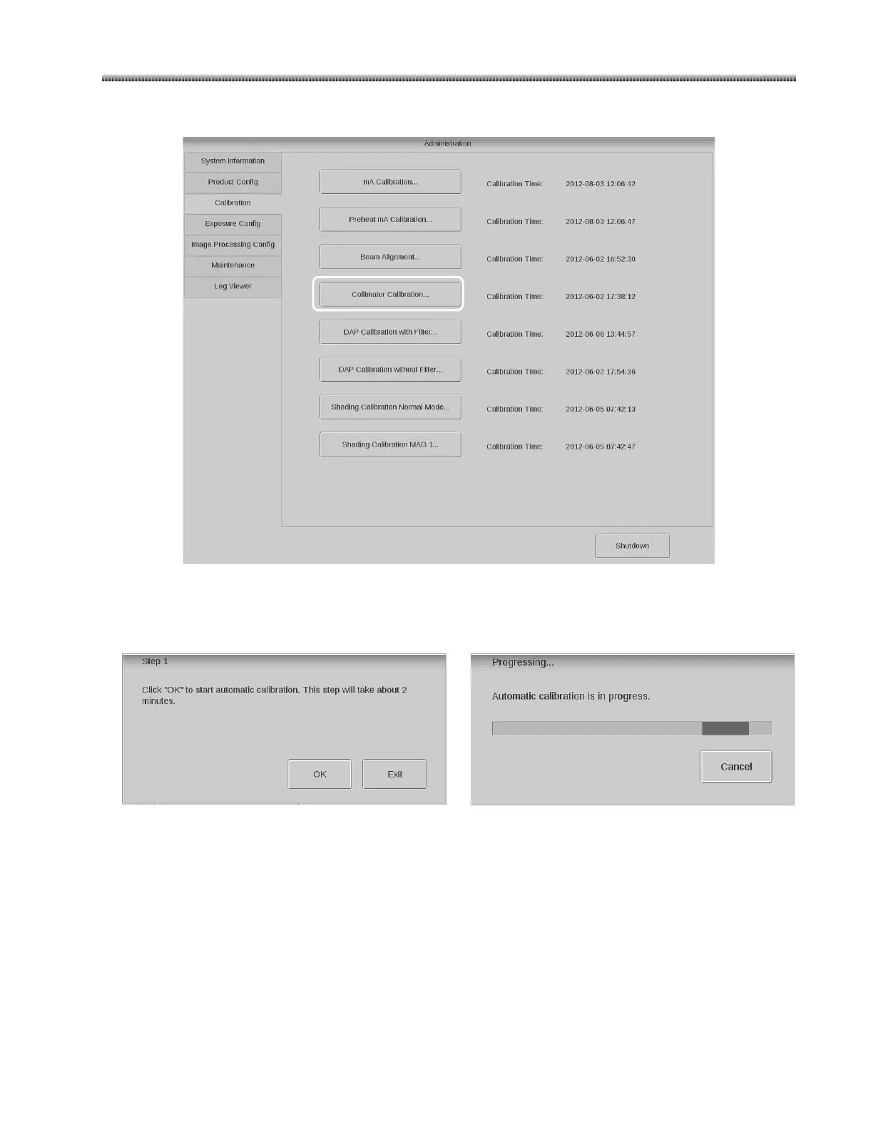 Step1 Collimator Calibration Initializtion: