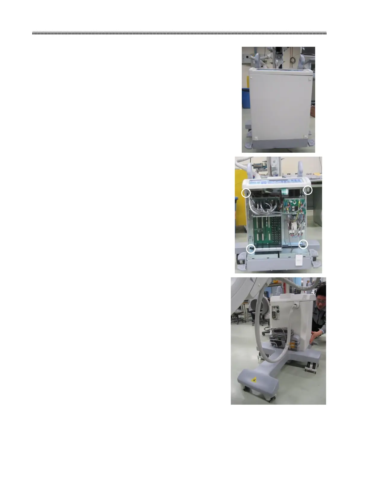 3. Remove the four screws secure C-Arm front cover. Avoid electric