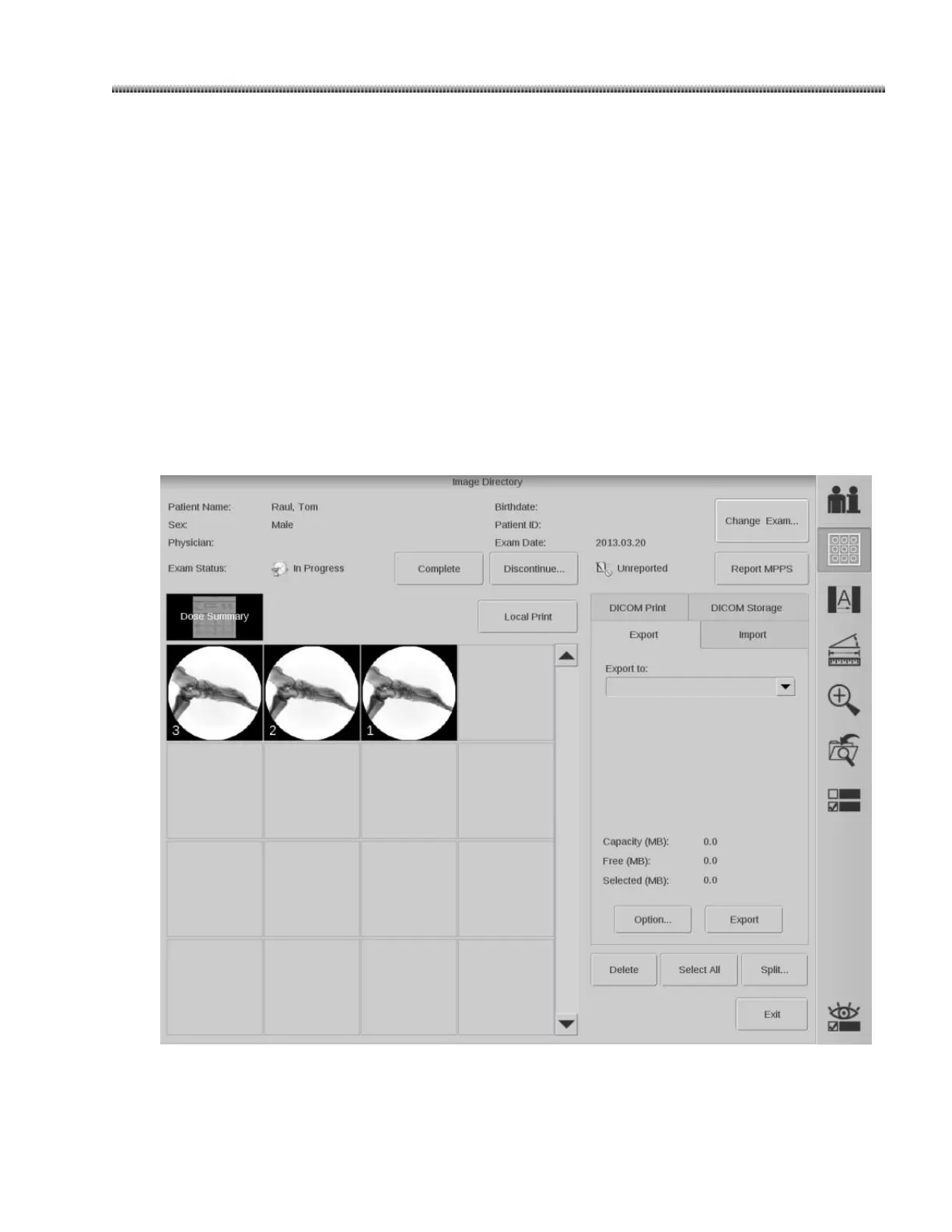 2.  Click “Complete” or “Discontinue” to complete or discontinue the exams on Image Directory screen.