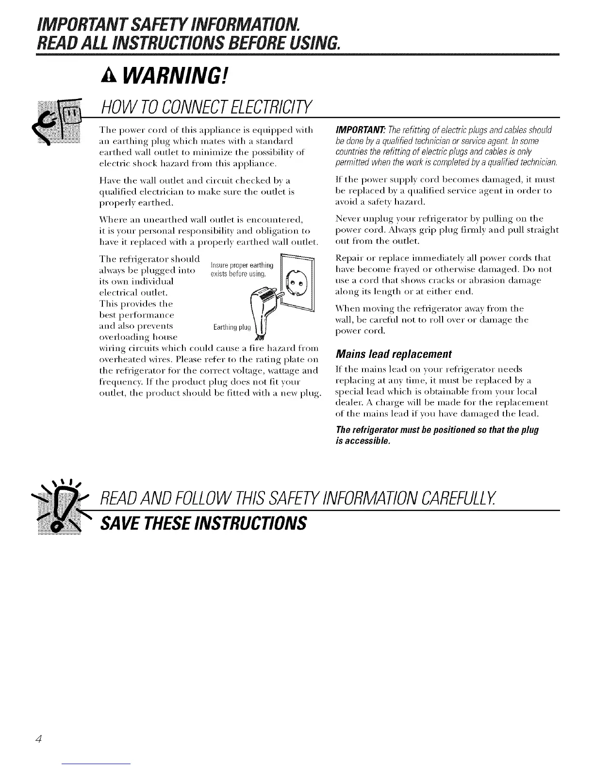 IMPORTANT." Therefittlbg of electric plugs and cables should