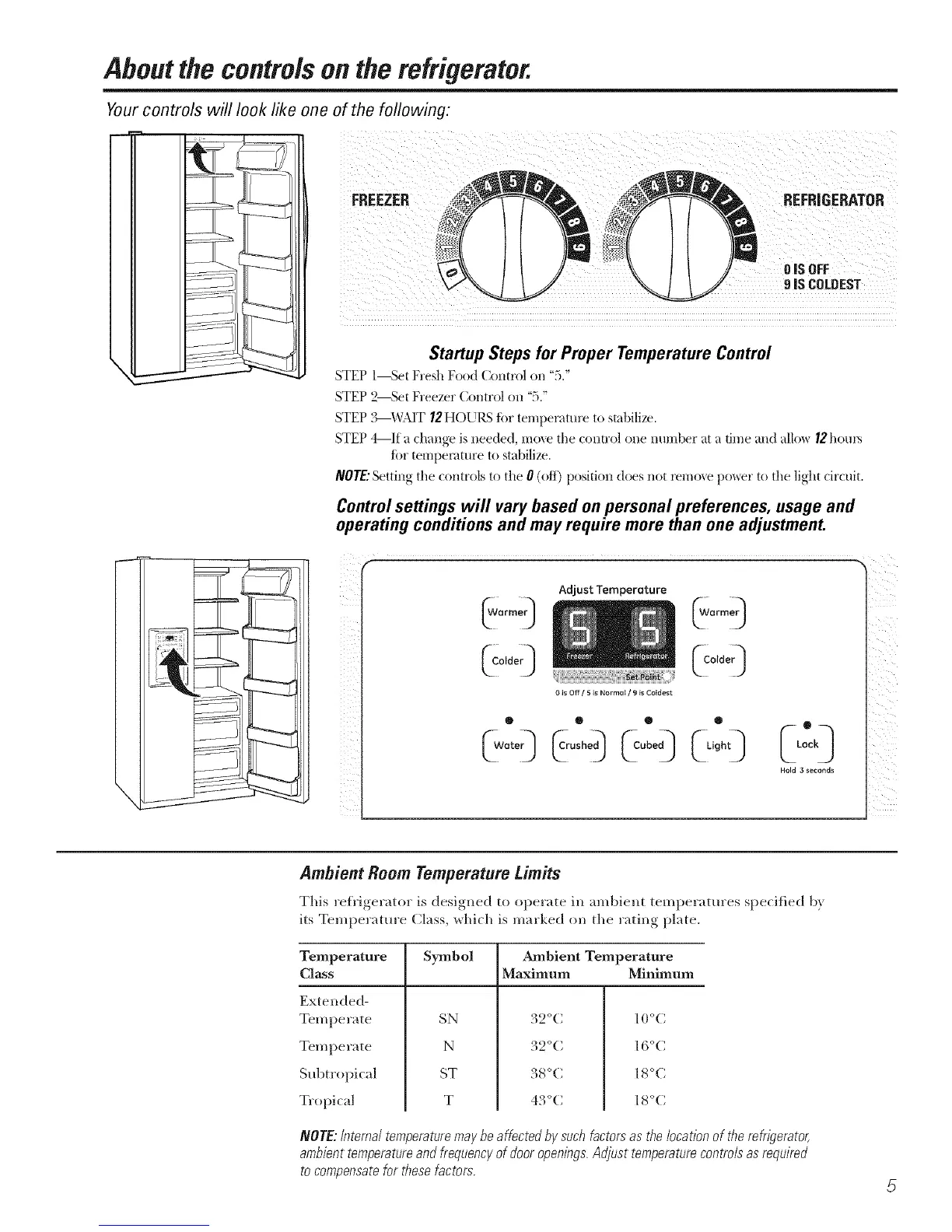 Aboutthe controls onthe refrigerator.