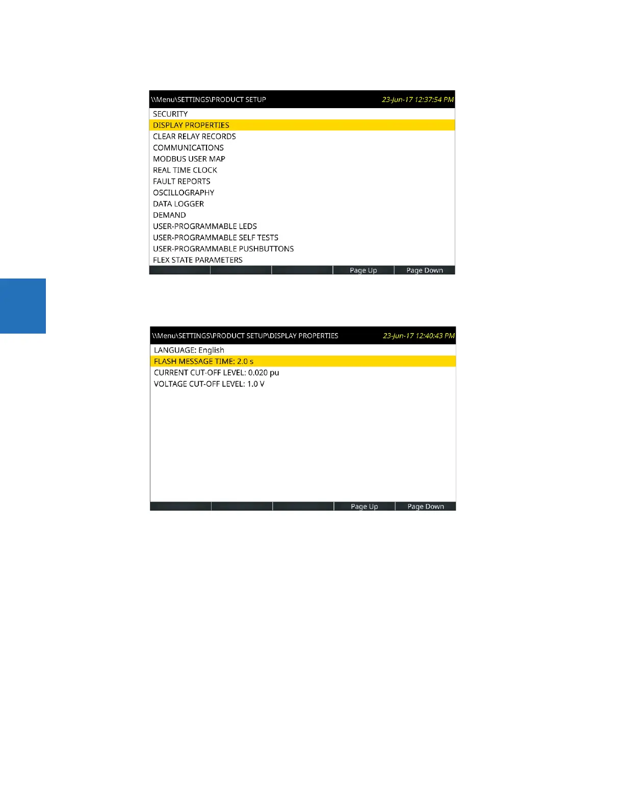 Use the Up or Down pushbutton to select FLASH MESSAGE TIME, then press the Right or ENTER pushbutton. If the relay is