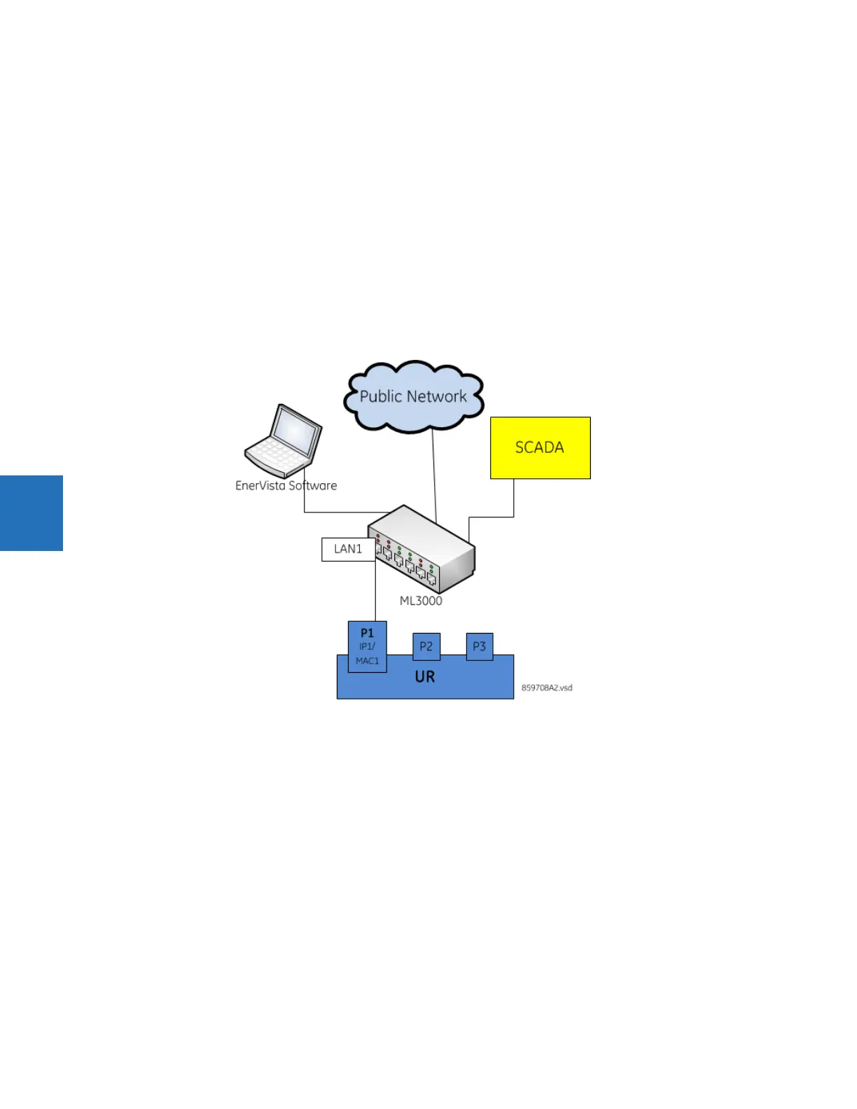 EnerVista, and access to the public network shared on the same LAN. No redundancy is provided.