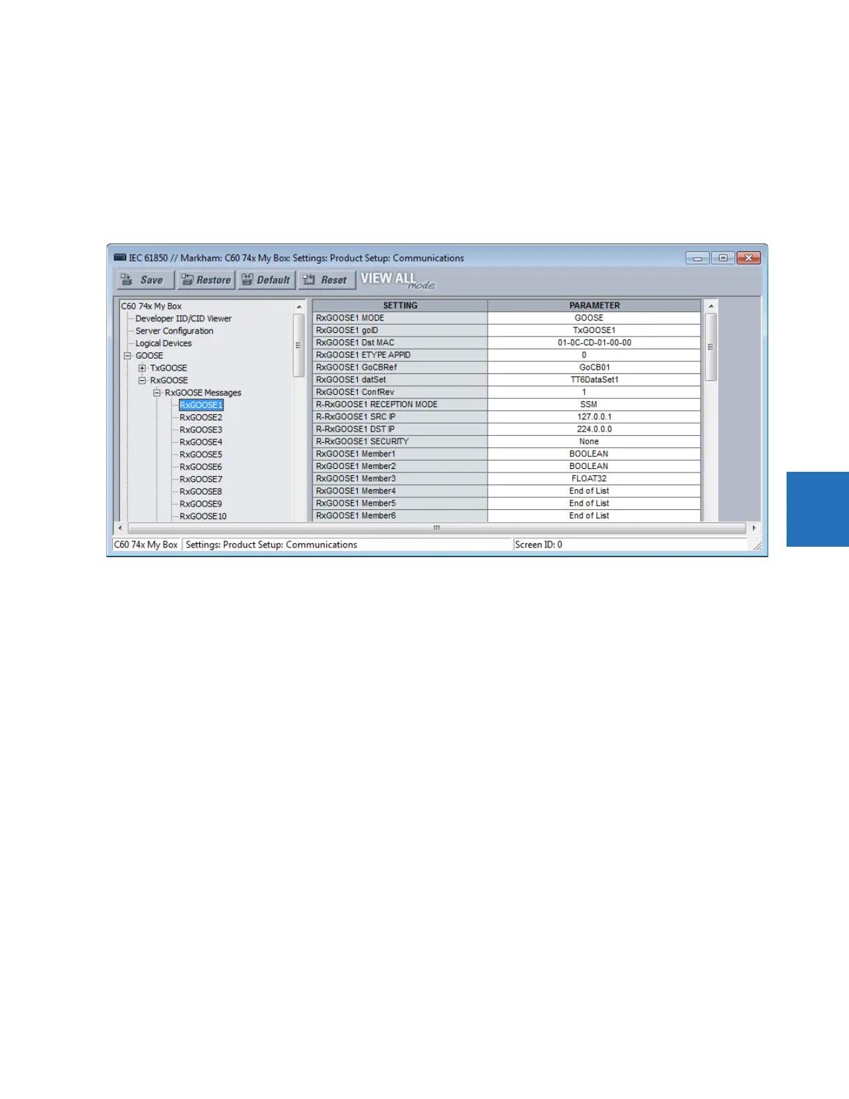 Navigate to Settings > Product Setup > Communications > IEC 61850 > GOOSE > RxGOOSE > RxGOOSE Messages >