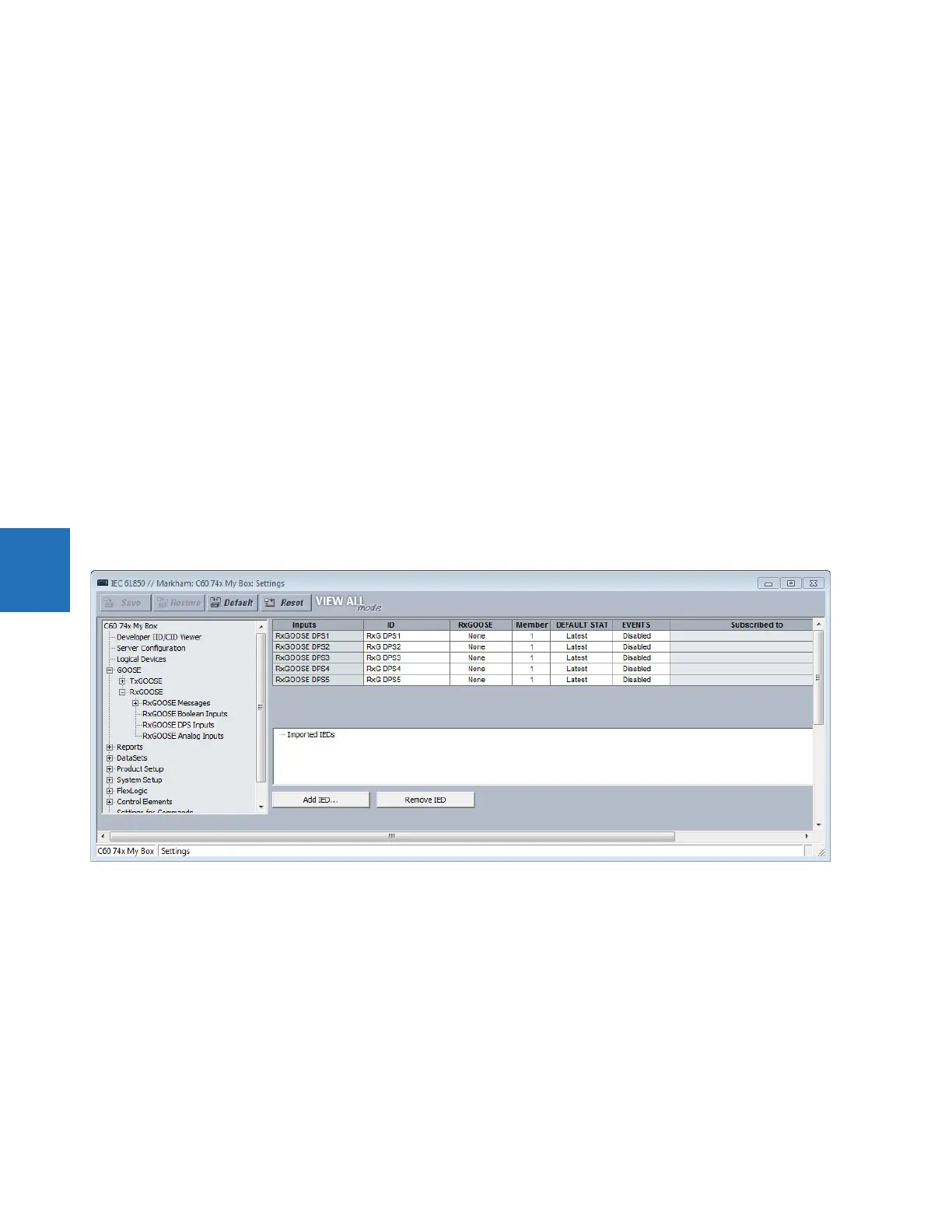 Navigate to Settings > Product Setup > Communications > IEC 618560 > GOOSE > RxGOOSE > RxGOOSE DPS Inputs.