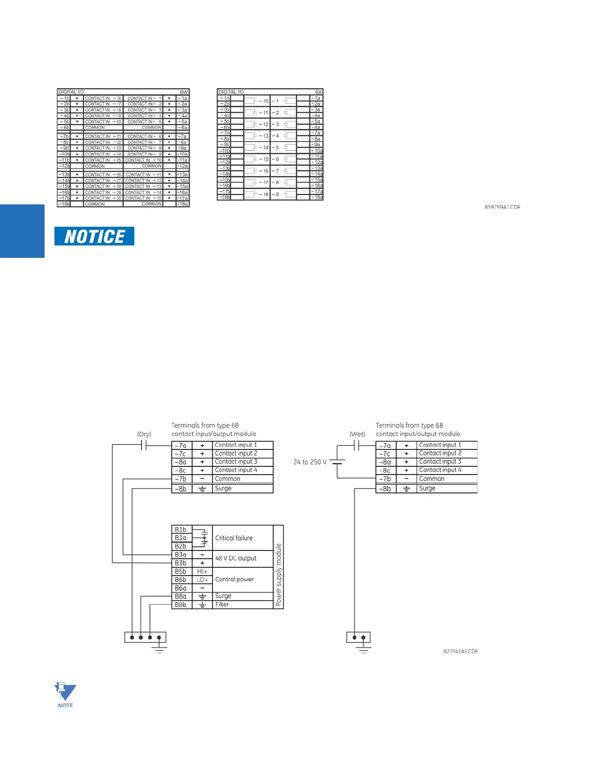 module. The other side of the dry contact is connected to the required contact input terminal. Each contact input group