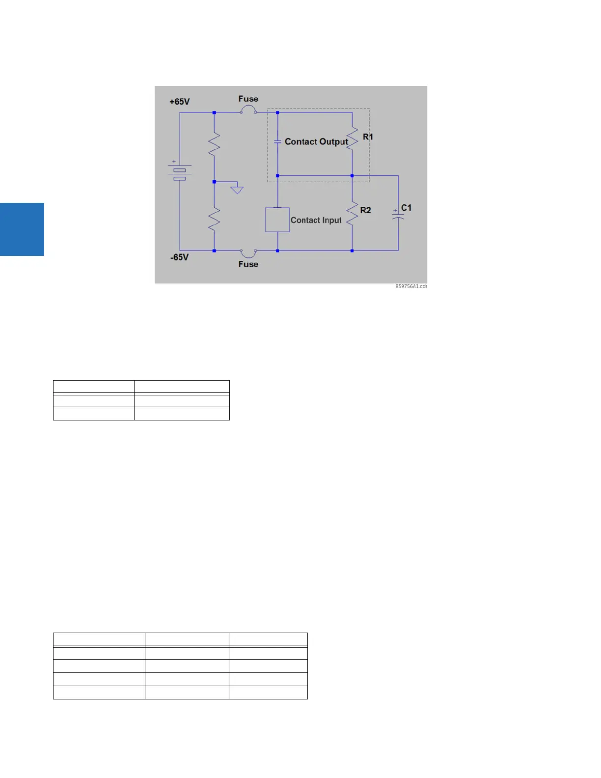 Contact input ON state impedance used in the calculation of the discharge period is based on the following table.