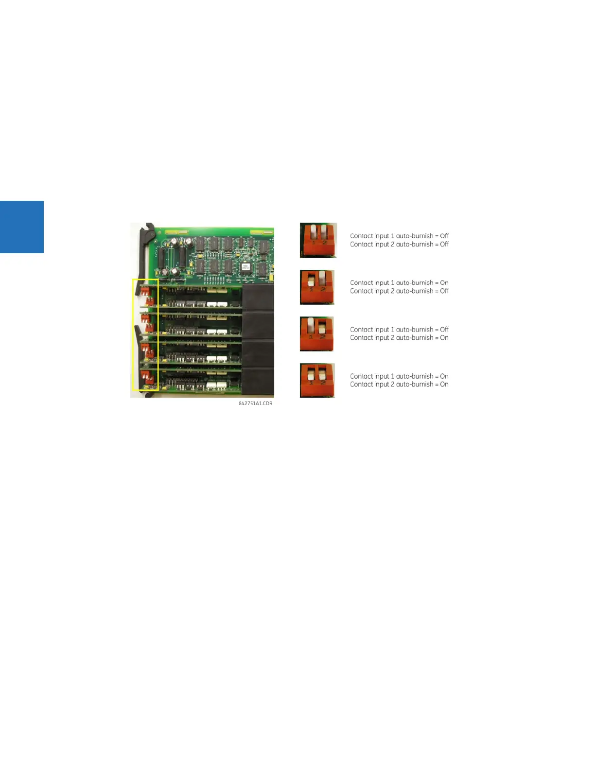 The auto-burnish feature can be disabled or enabled using the DIP switches found on each daughter card. There is a DIP