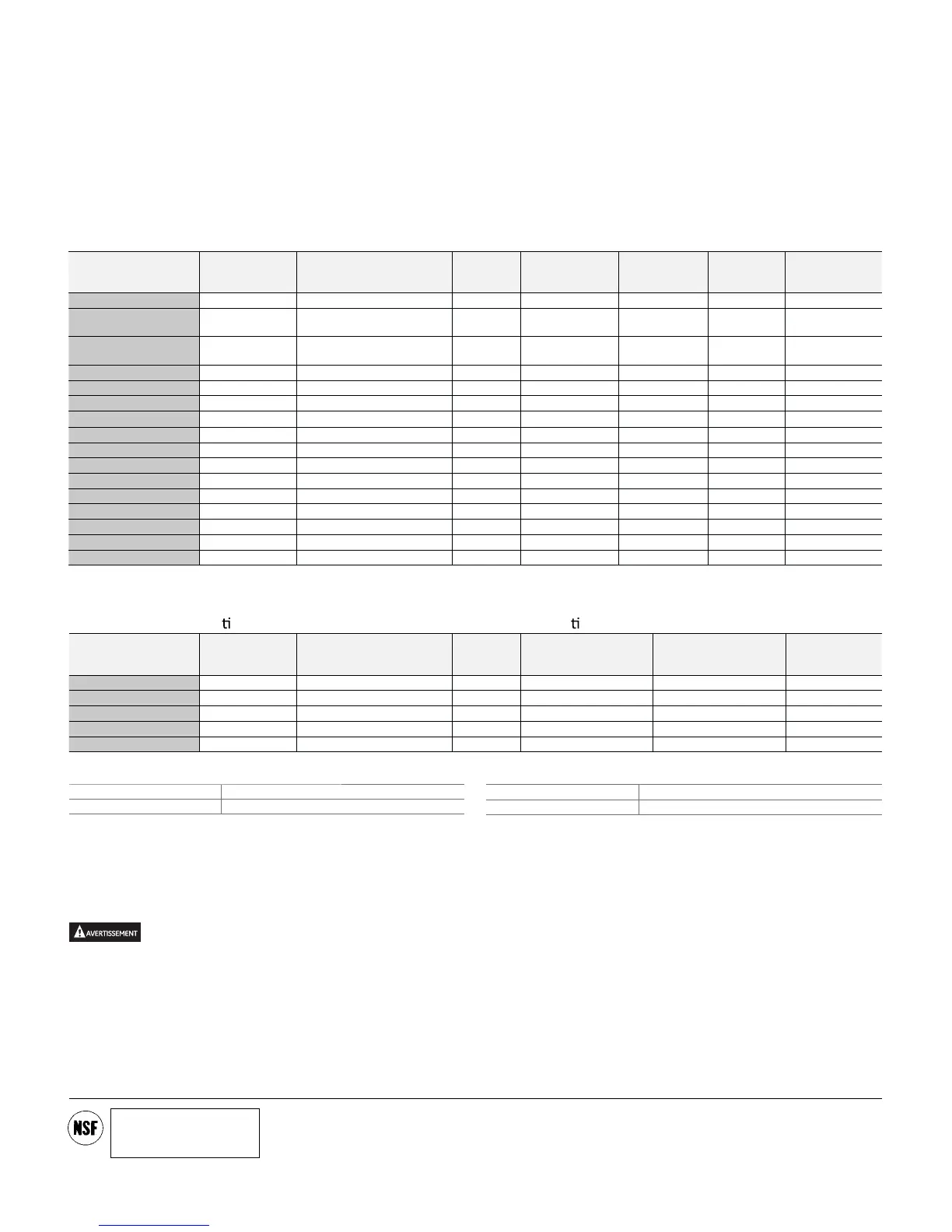 Capacité 170 gal. (643,5 litres). Réduction des contaminants déterminée par essai NSF.