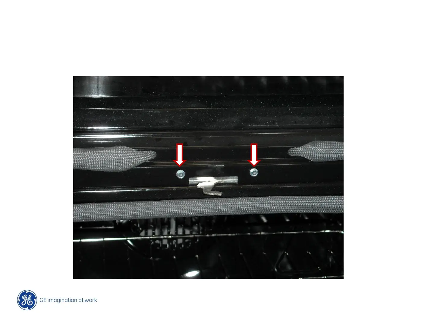 If the lower oven door should lock shut due to a latch failure, the two ¼” hex screws