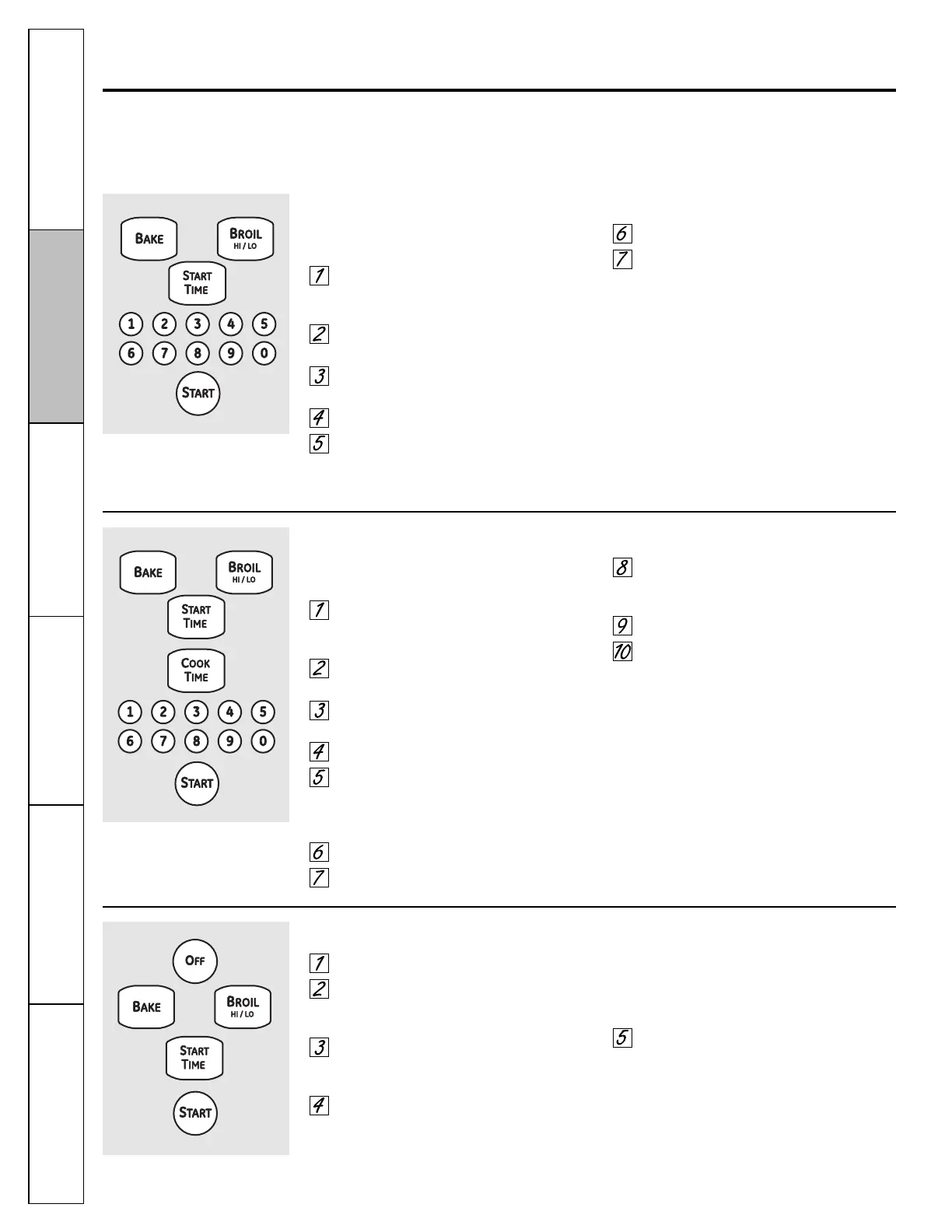 broiling, self-cleaning, or Delay Start cooking.
