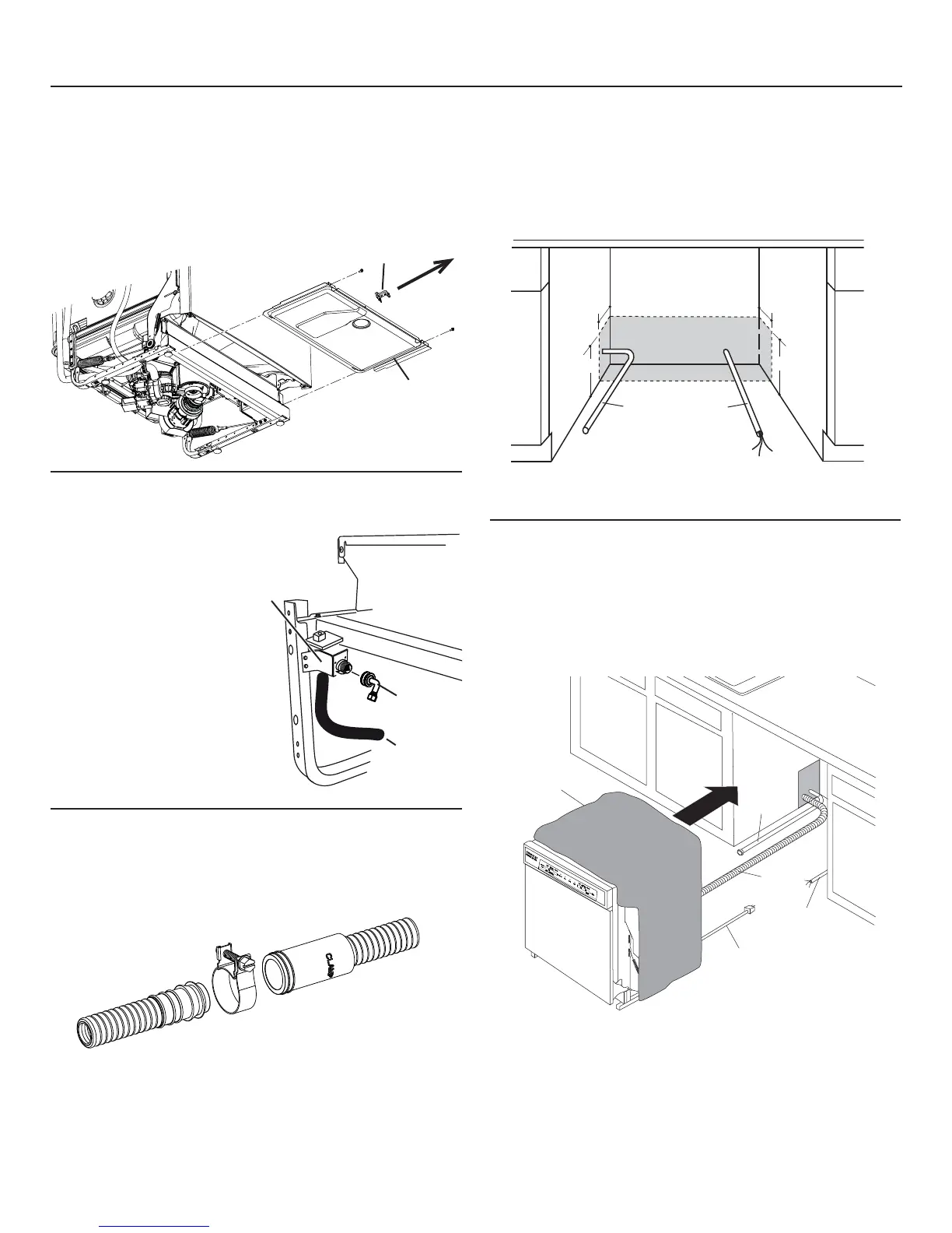 • Position dishwasher in front of cabinet opening. Insert drain