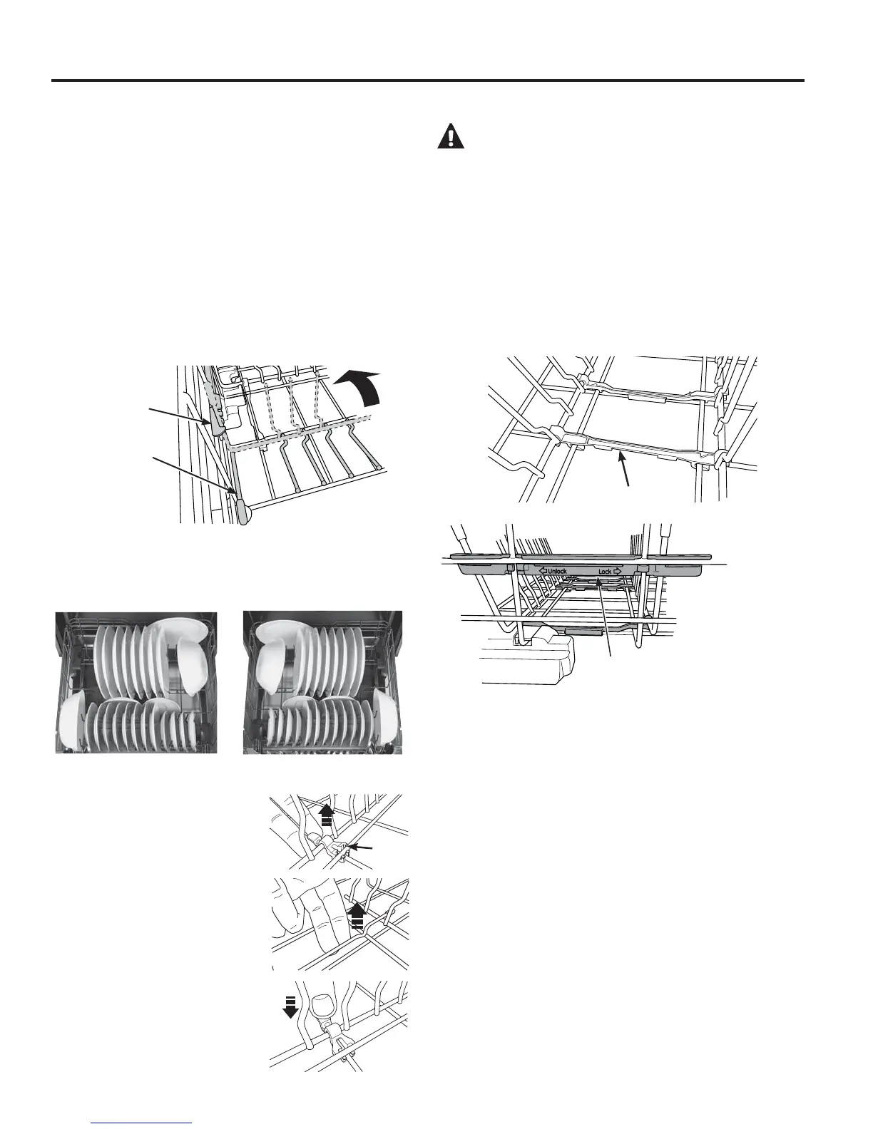 La dirección en la cual carga platos en su estante inferior puede