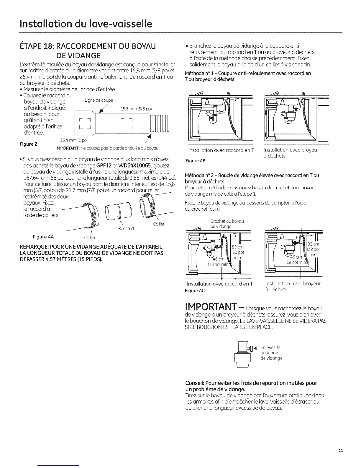 IMPORTANT: Ne coupez pas Io portie ondul6e du boyau