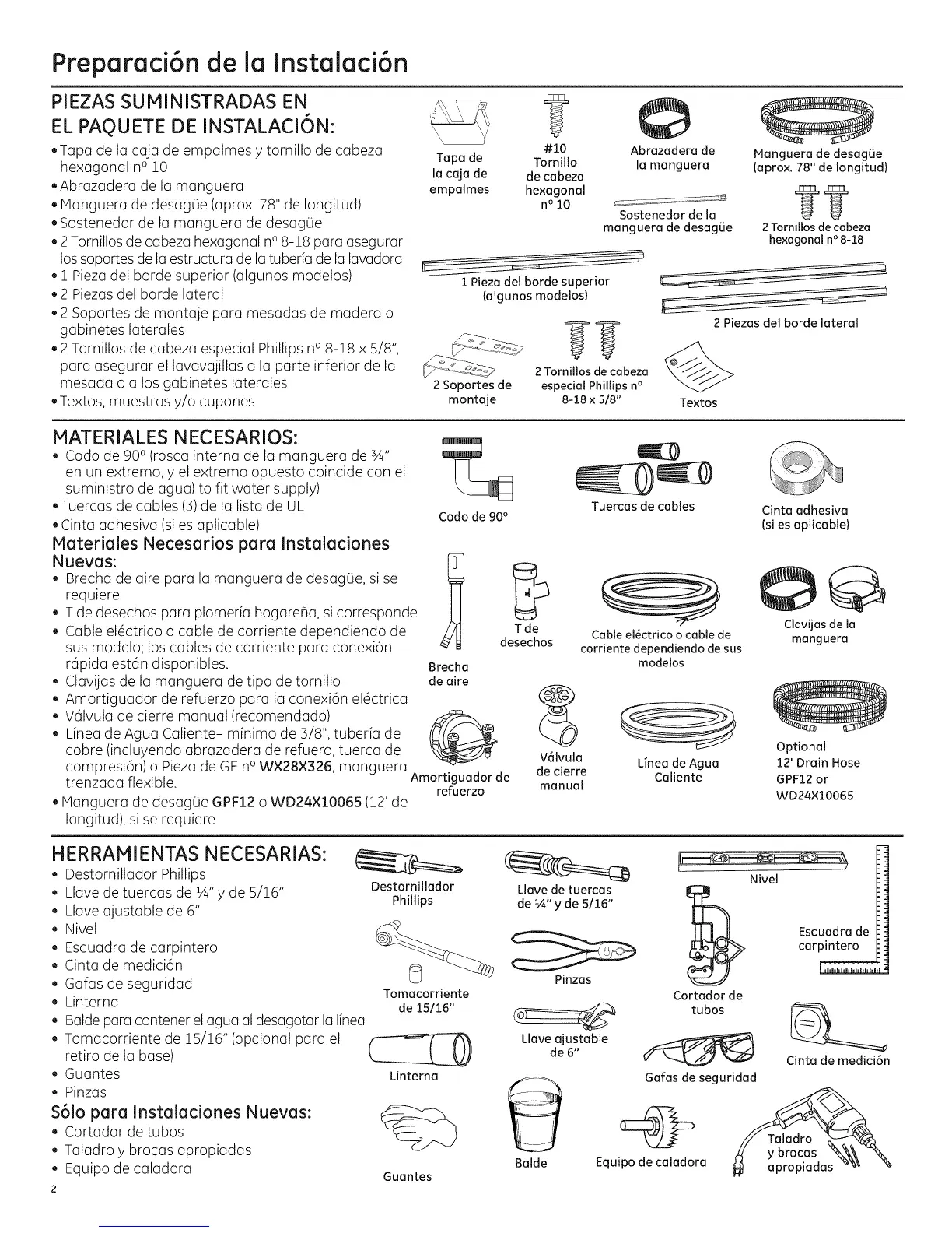 . iVlanguera de desag0e (aprox. 78" de Iongitud)