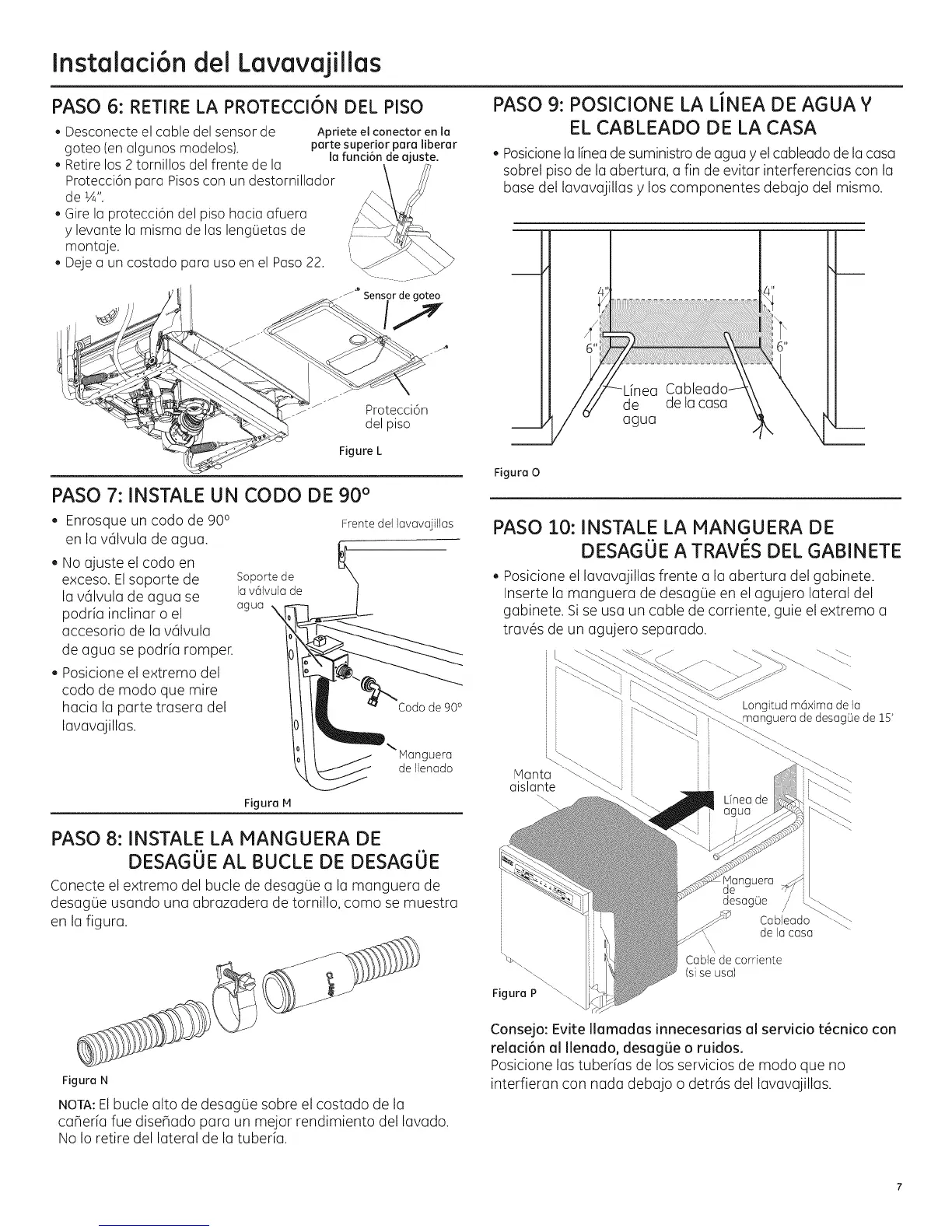 interfieran con nada debajo o detras del lavavajillas.