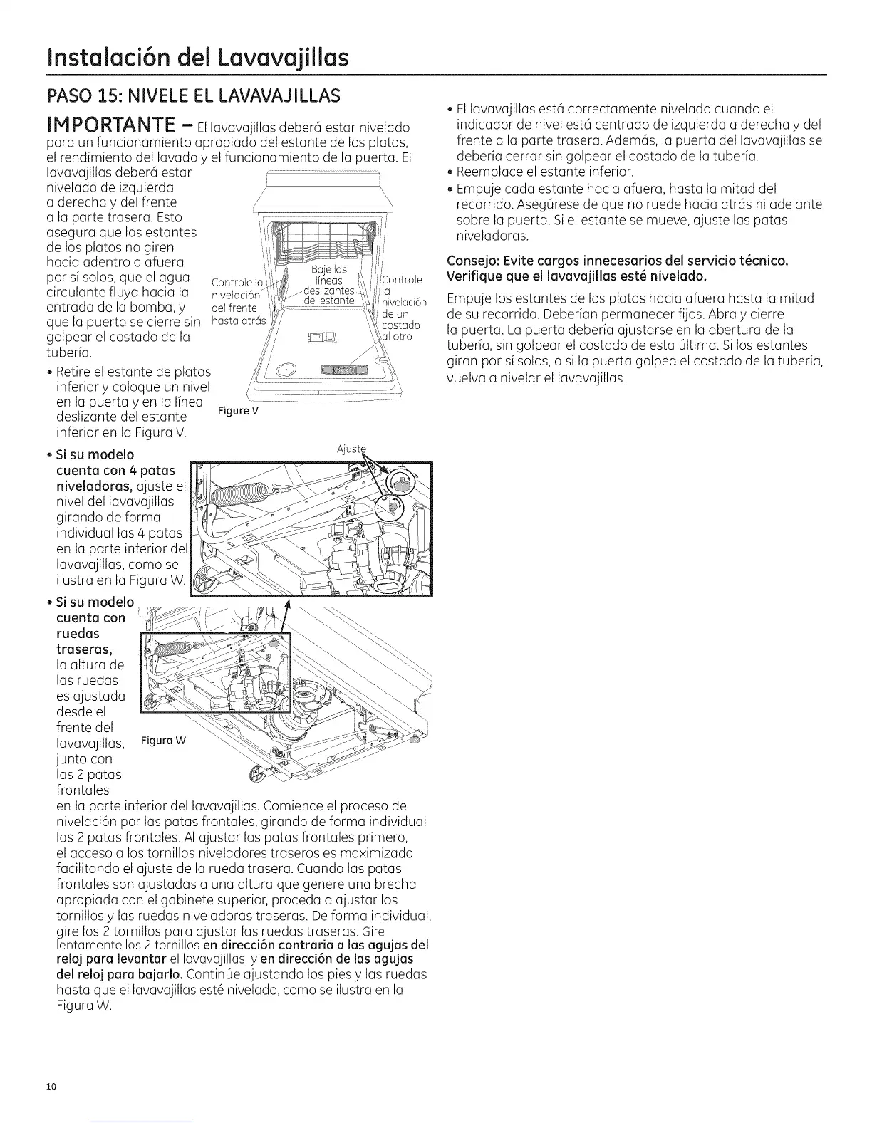 haste que el lavavajillas est6 nivelado, como se ilustra en la